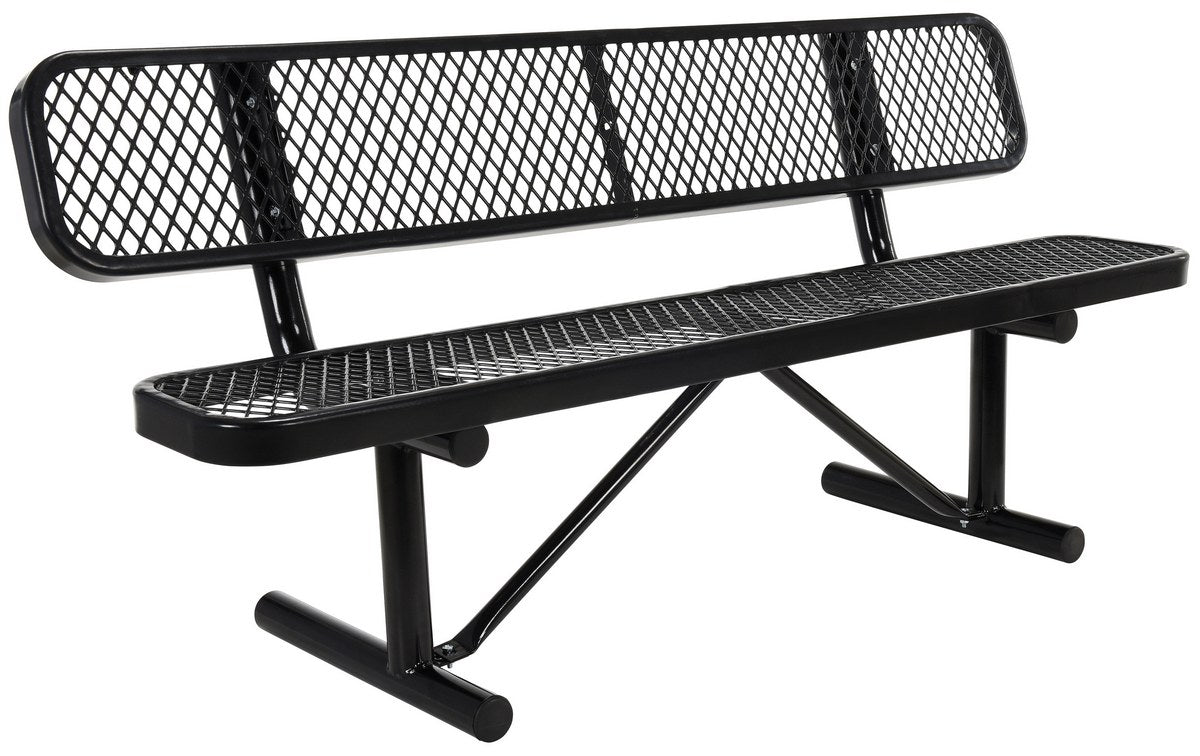 Built to last and highly attractive, this commercial grade bench is constructed of expanded metal that features a diamond pattern. Finished to endure the elements with virtually no maintenance. The seat is coated with a rugged thermoplastic layer that's attractive and durable. Galvanized tubular steel legs and supports are protected with a black powder coat finish designed for strength and stability.