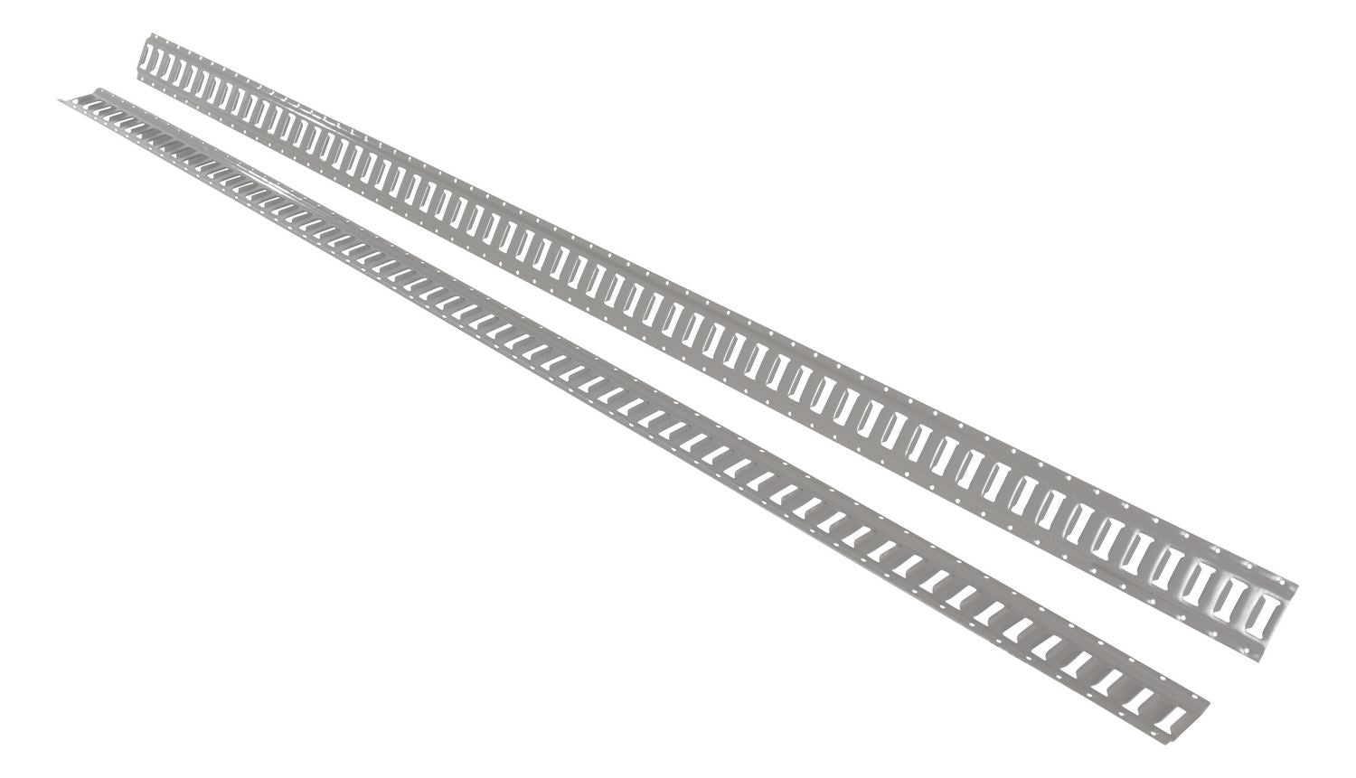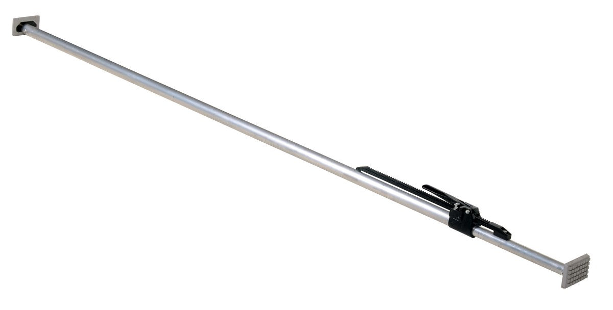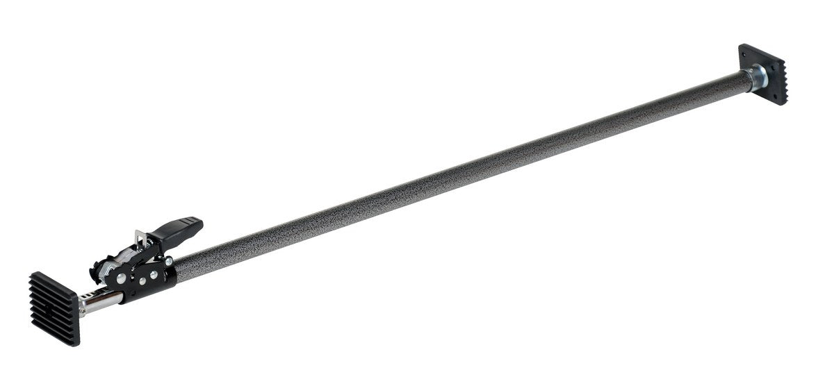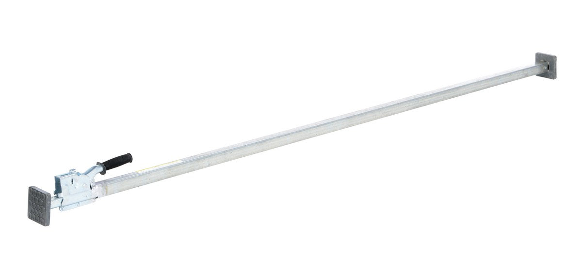 The two Piece folding cargo bar keeps trailer contents in place to eliminate damaged goods. It has a simple mechanical lock that will not vibrate loose. The cargo bar is constructed of square tubing with a wall construction that is lightweight yet extremely strong. Square articulating steel end plates feature pads for positive gripping action, end plates and fit between trailer walls.