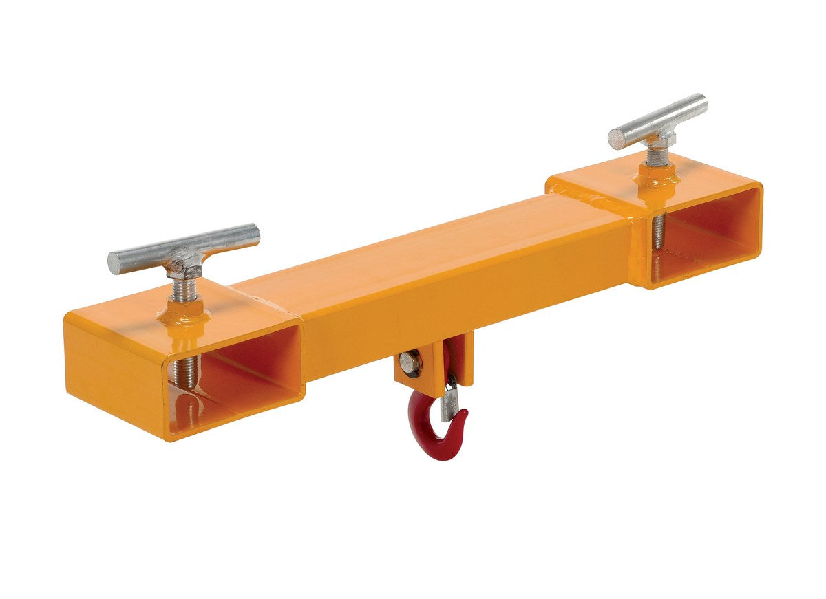 The hook attachment is designed of a strong construction for lifting awkward heavy products. A simple installation allows the user to obtain immediate use of the hook and start maneuvering products. A bright yellow finish promotes safety and visibility while transferring units.