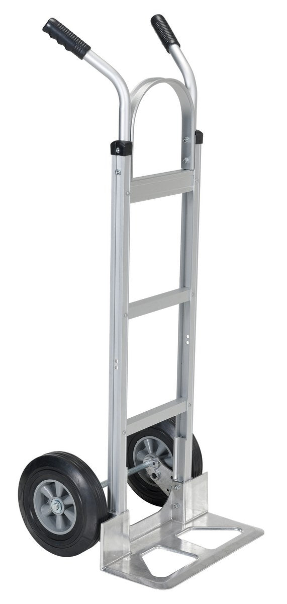 Maximize control for different types of loads. These hands trucks can transport boxes wherever they are needed. Transport loads smoothly and evenly over rough or uneven floors. Pneumatic tires are standard on all hands trucks, while industrial solid rubber tires are also available. The convertible hand trucks have pneumatic tires and poly on swivel casters. Optional stair guides available. Assembly is required.