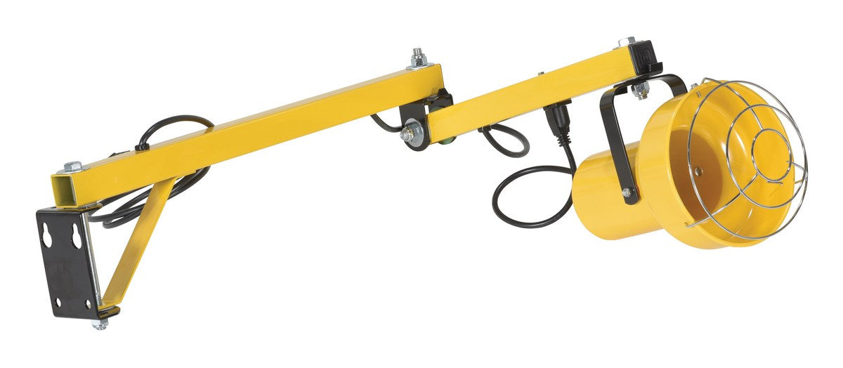A dock loading light minimize freight damage while expediting loading and unloading operations. Designed to provide uniform visibility inside trailers or around dock areas. Offer good color, low replacement cost and turn on instantly even in cold environments. It utilizes a ninety (90) watt bulb, sold separately. Adjustable arm knuckle joint allows vertical and horizontal positioning. Made for dry locations and is UL listed.