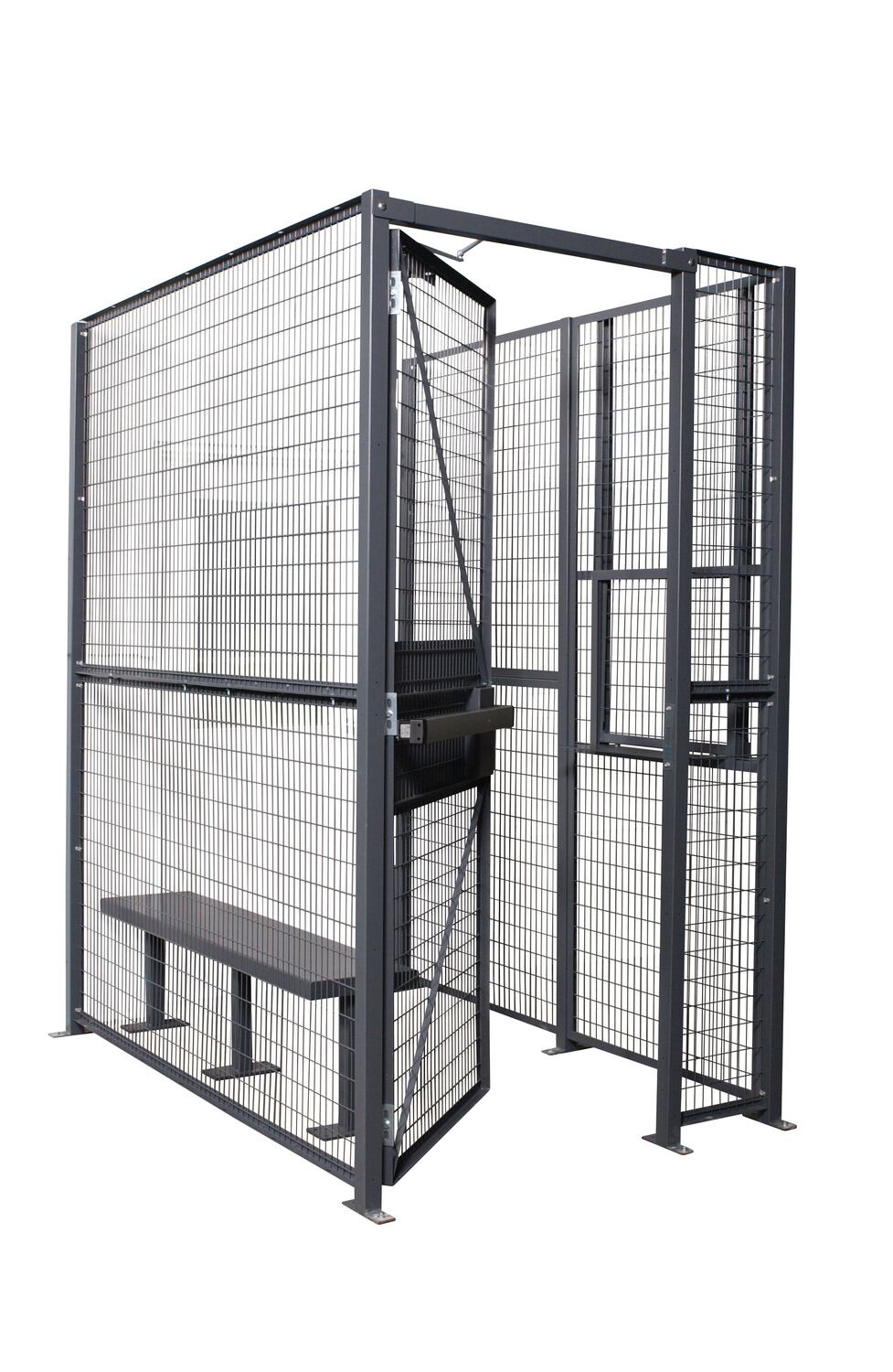 The driver cage works great for warehouses or any manufacturing facility. The cage is designed to ensure the delivery or service personnel can�t enter further than the designated area. The woven wire construction with a painted finish includes a slide up service window with a shelf for efficient interaction between driver and facility employees.