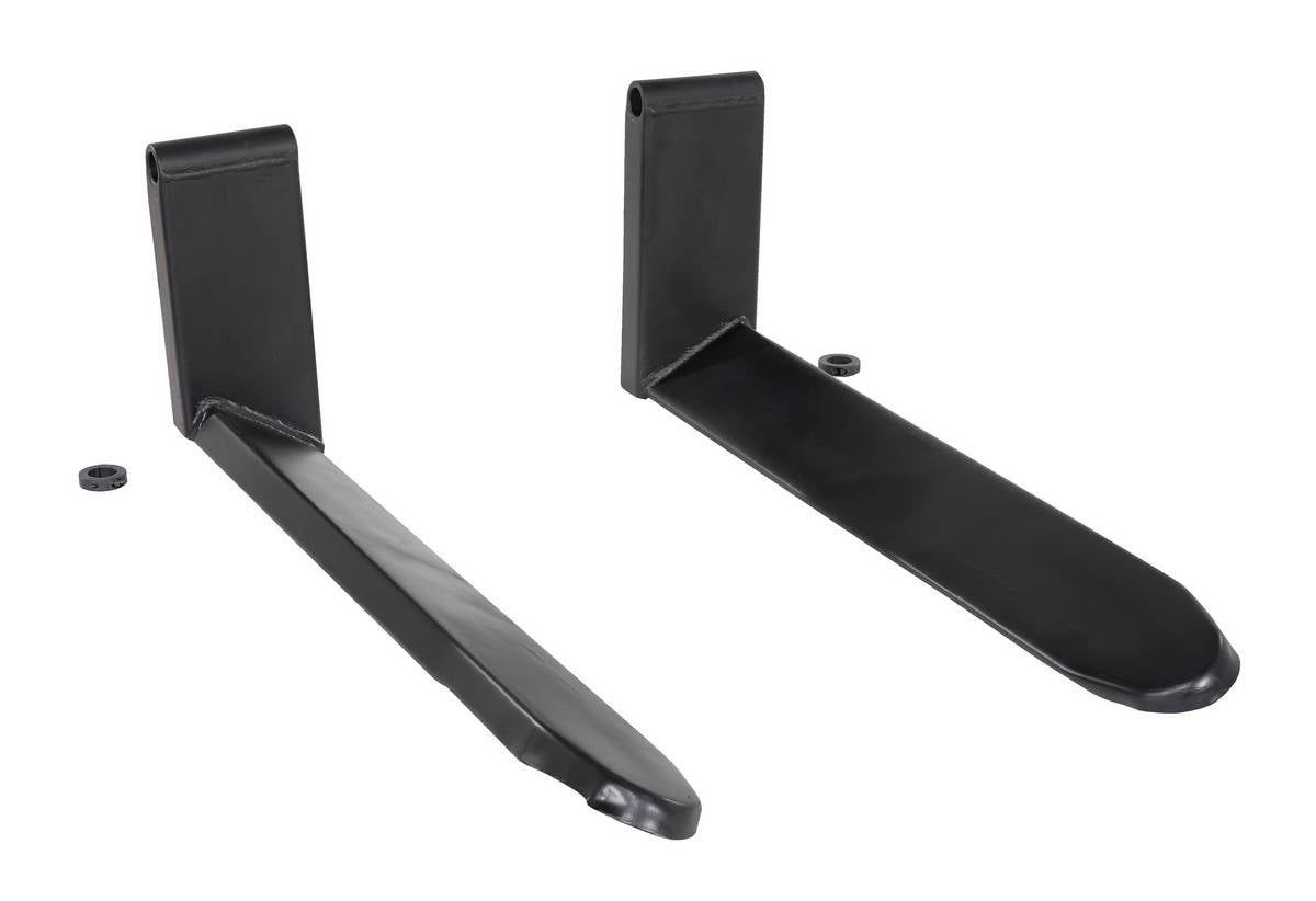Picking up and moving round items on standard flat forks is often difficult and always dangerous. Now, with a fork set tilted to the center of the lifting unit, that difficulty is diminished. The inclined design of the forks creates a more stable lifting experience that limits movement and jostling of the products. Forks are constructed of steel and are simple to attach for immediate use. Powder coat finish diminishes chances of possible product abrasion and adds a baked in toughness.