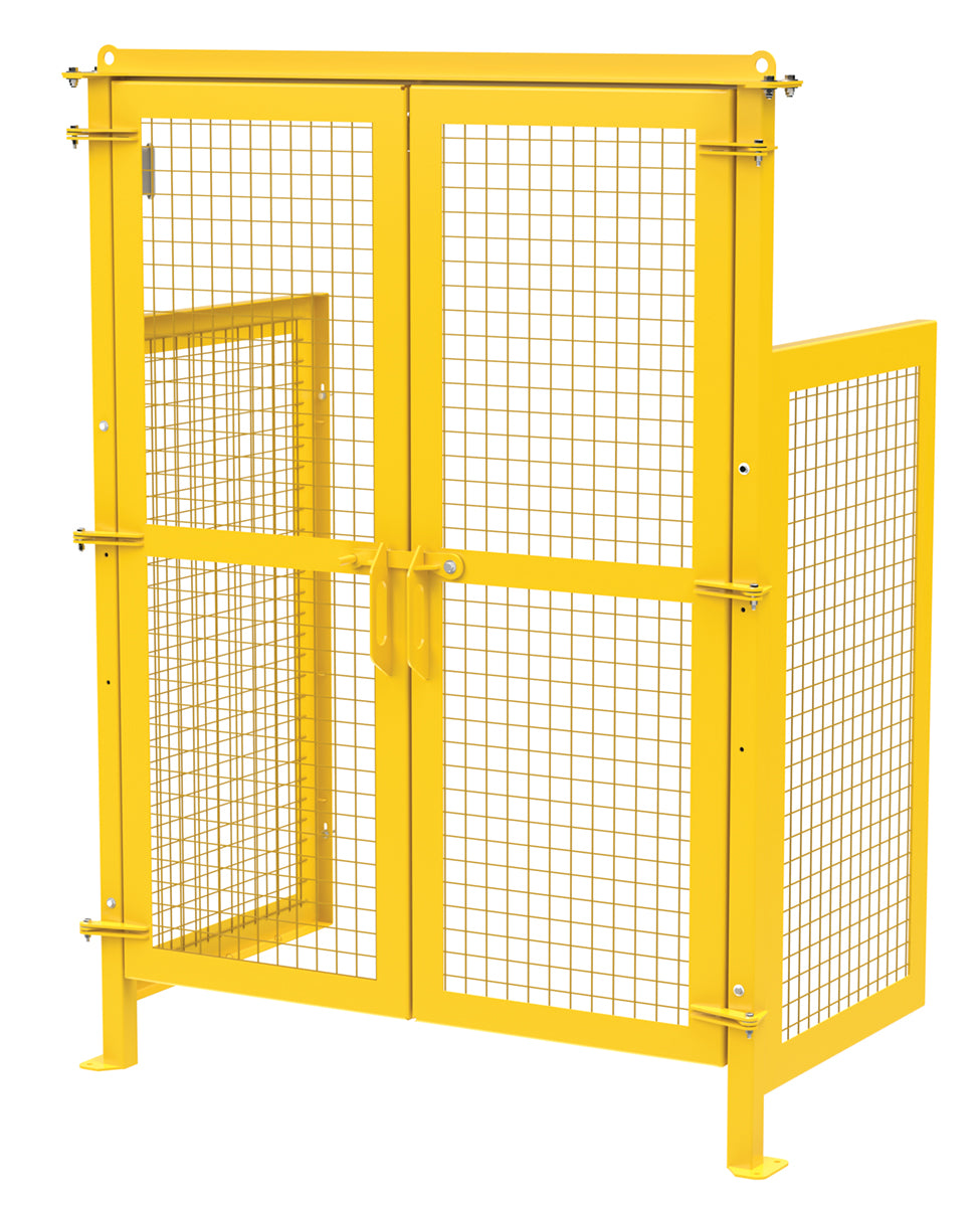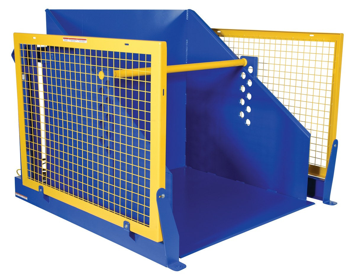 A great addition to the hydraulic box dumper, this gate promotes safety while maneuvering heavy objects. With a tall structure and a strong construction the gate must be closed to allow functionality of the box dumper. Once the gate is latched the unit will function normally. The mesh design lets the user be shielded from possible falling objects, while still maintaining visibility on all on board items.