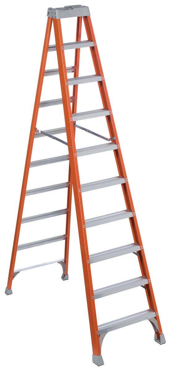 - Fiberglass stepladder is equipped with slip-resistant footing