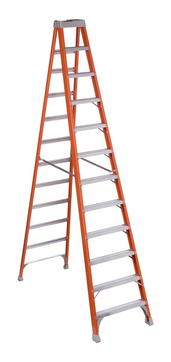 Our Fiberglass stepladder is made of a non-conductive fiberglass industrial material and is extra heavy duty. This ladder is equipped with slip resistant footing and a non-conductive structural molded top with tool slots to help keep tools close at hand.
