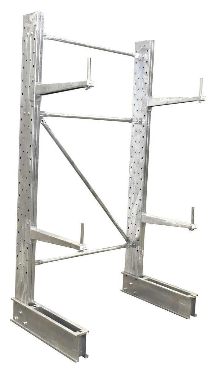 A galvanized cantilever rack kit makes storing and picking large items as simple as can be. A strong steel construction with a galvanized finish makes an already durable product even more robust. The single sided unit can be maneuvered into certain boundaries and up against walls. The rack includes pre-drilled holes for mounting the uprights to the surface of the users� choice. Capacity is calculated per level.