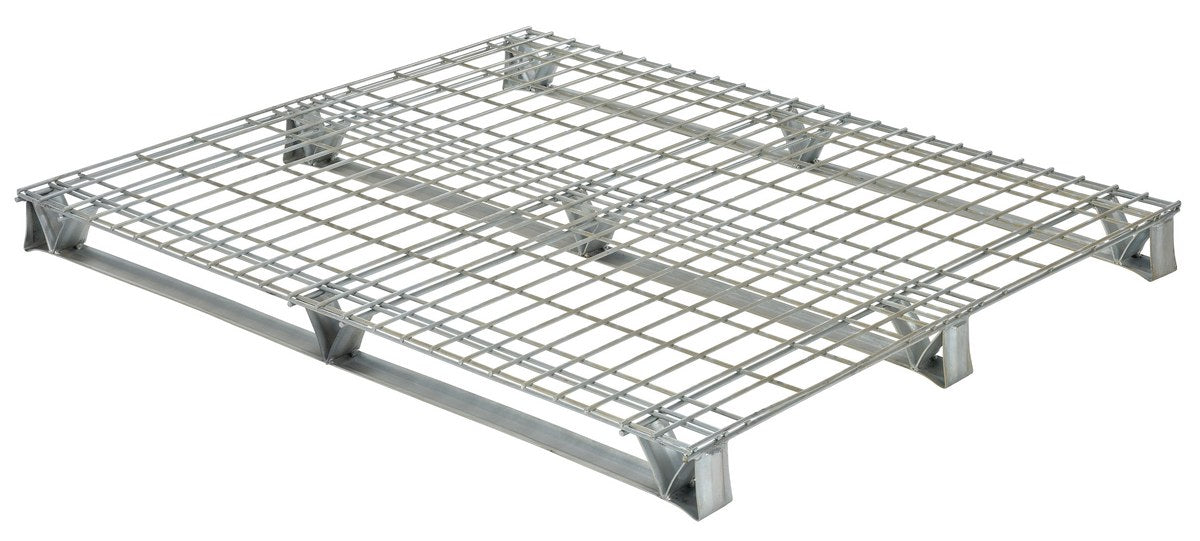The Galvanized welded wire pallet will stand up to heavy-duty use with a design that allows for stacking. Four way access with pallet truck and fork trucks. The open decking features a grid pattern that is made from welded steel wire. The unit has a welded steel construction with a galvanized finish.