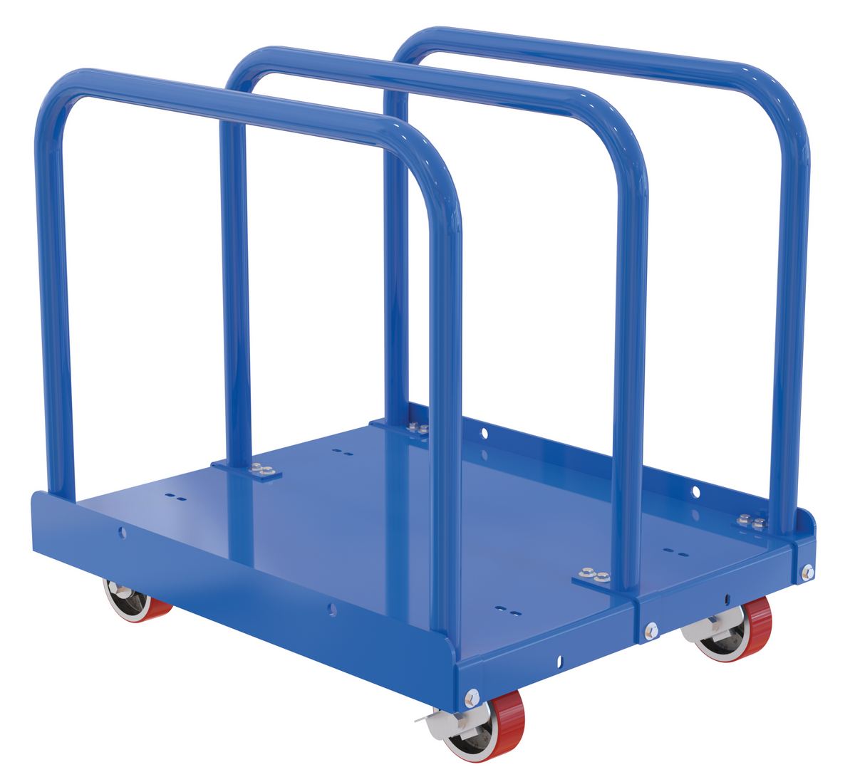 Multi panel carts are a staple in the hardware and home improvement industries. With the multiple bay design, products of different sizes can be transported all at once. The unique design is perfect for storing items vertically as well. Large awkward sheets that would normally have been strenuous to maneuver, can now be slid into place with minimal effort. For additional customization, bays can be individually taken out or put in place to best meet the dimensions of the products. With a steel construction, the carts durability and consistent reliability endures throughout heavy daily use.