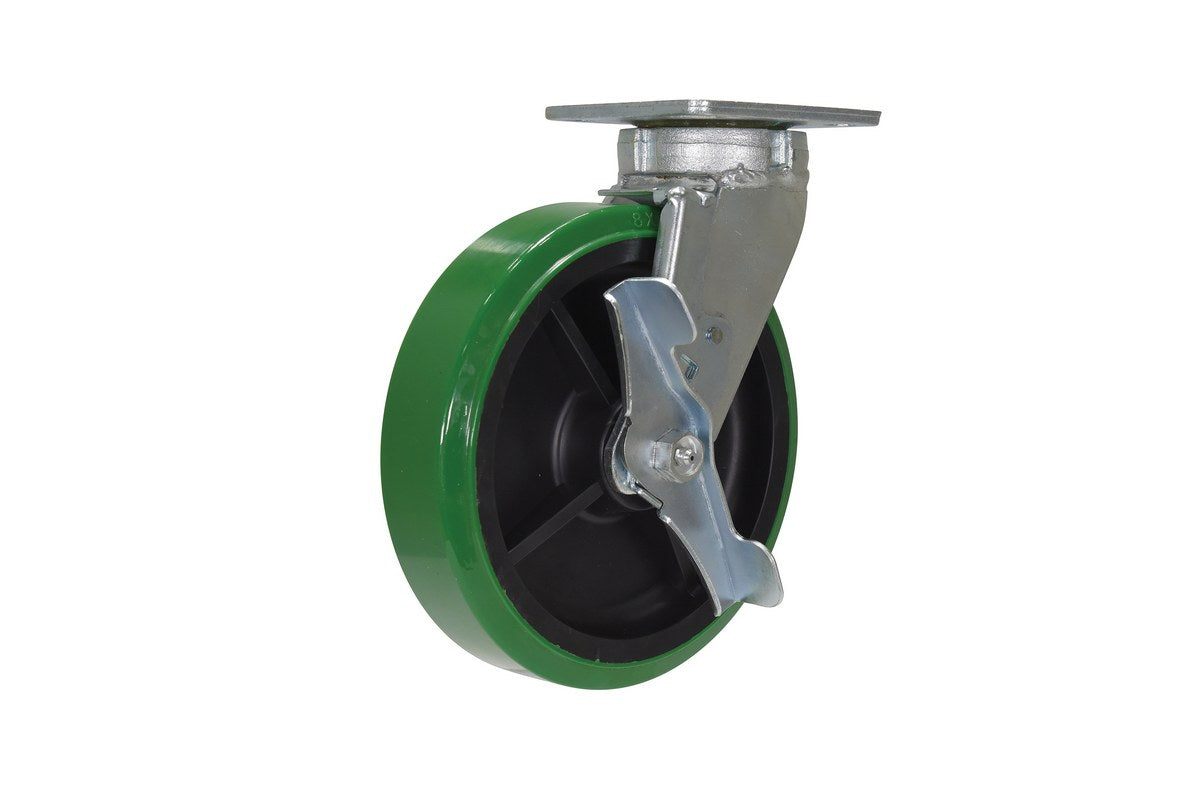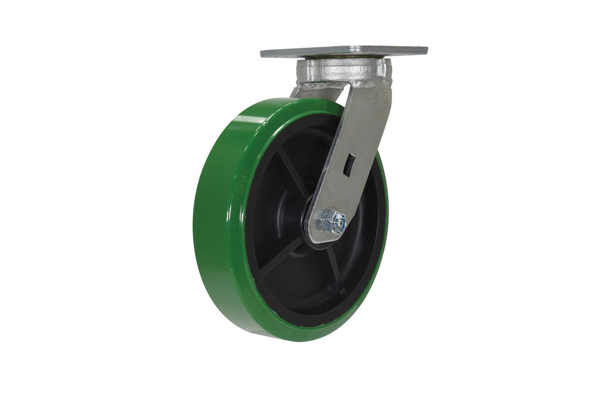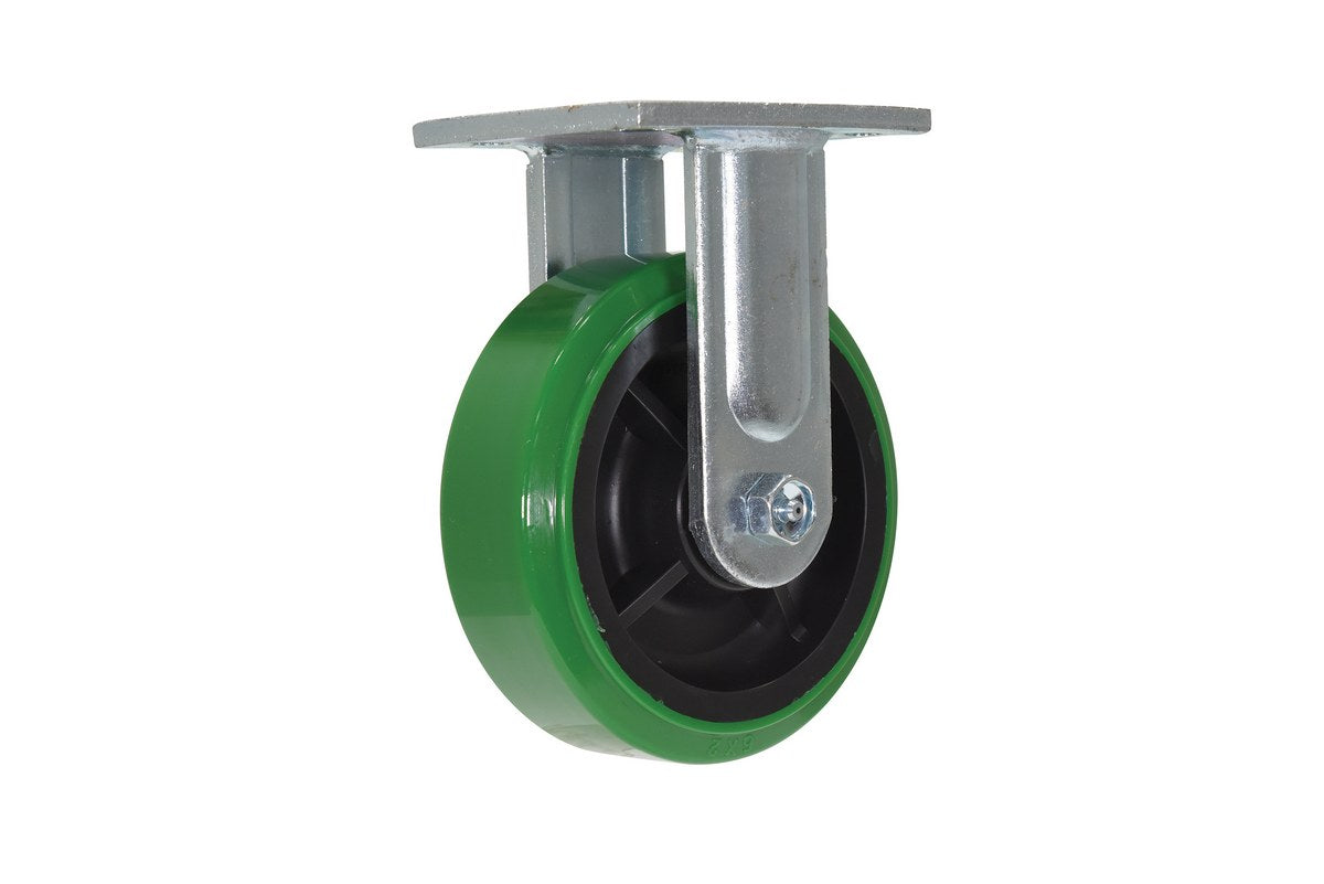 Professional grade liquid cast 100% polyurethane mechanically bonded to an engineered flow-through polyolefin core. The unique polyurethane formula can�avoid disintegration�problem which the usual plastic wheel would face, and provides�5 times longer wheel tread life�than general wheels. Duratough polyurethane wheel resists oil, grease, water, and most solvents, and has�high resistance to floor debris. The wheel reduces unwanted noise and has non-marking�superb floor protection. High capacity and light weight for�ultra-ergonomic performance.