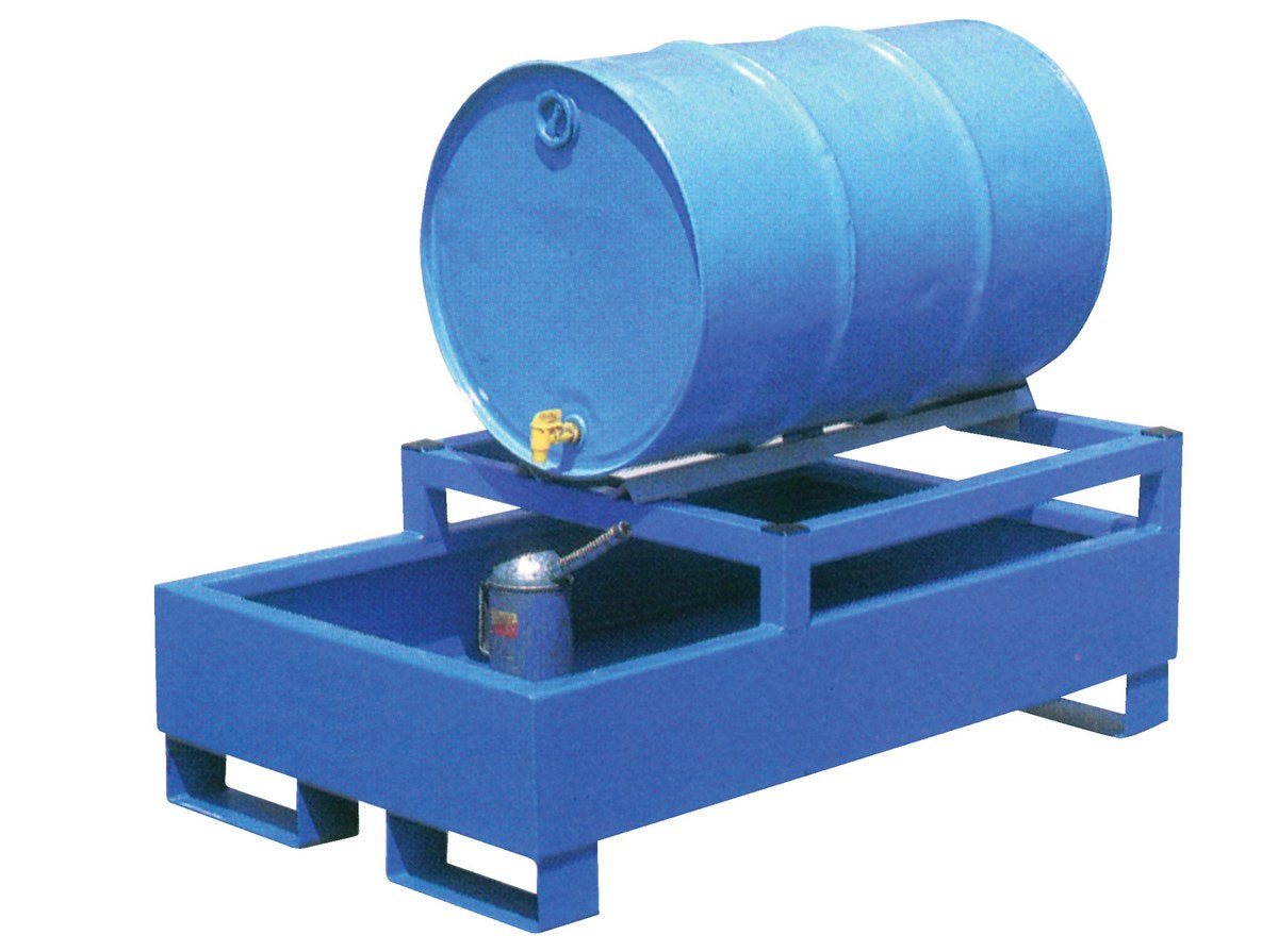 A horizontal retention basin makes storing and draining drums that much more efficient. A steel design can withstand a variety of environment including those that are extremely hot. Fork pockets are included to for simple lifting and maneuvering. The built-in horizontal drum cradles are sloped for time saving during draining.