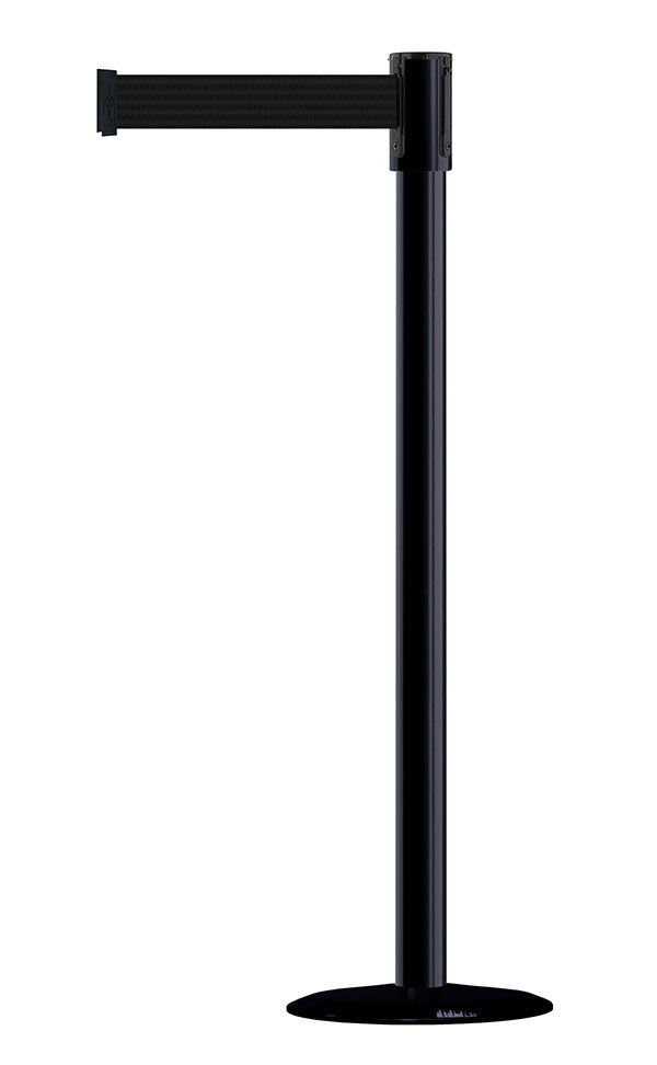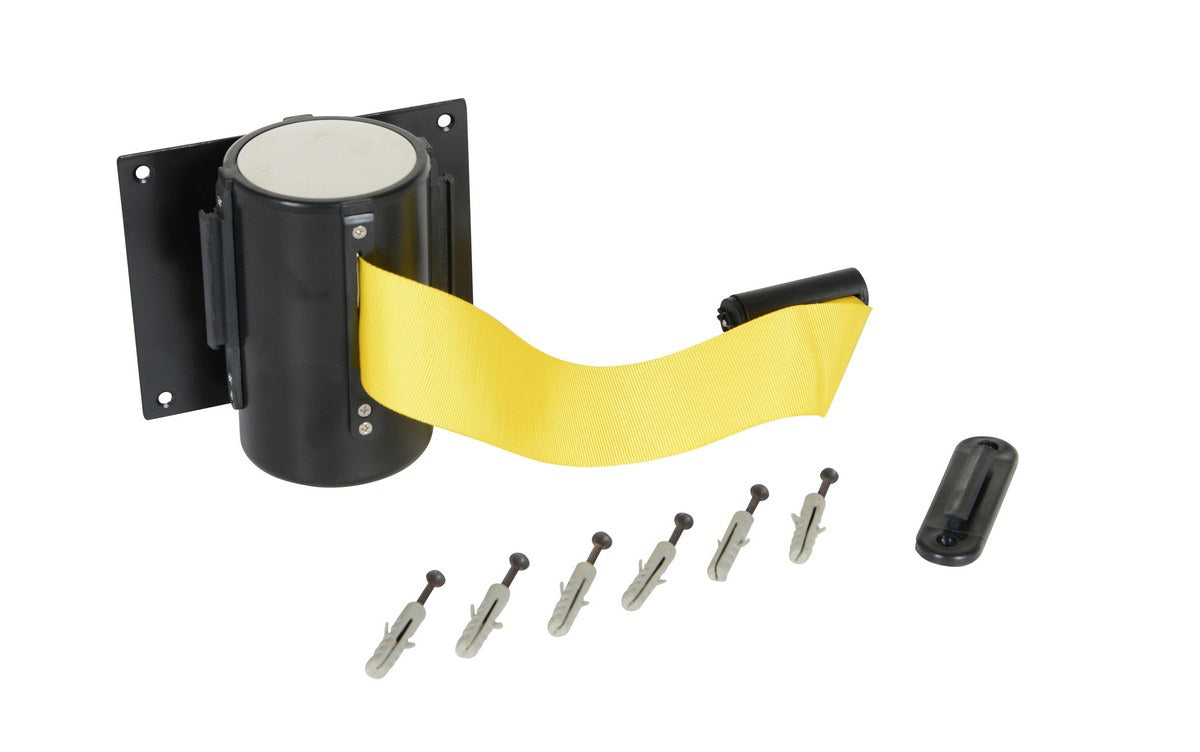 Keep lines flowing smoothly with economical indoor personnel guidance barrier. Perfect for restaurants, offices, hospitals, schools, and banks. Ideal for indoor applications. Series web are not interchangeable with series TSB. This post with yellow fabric web, has a self-reeling top. Web end will attach to wall-mounted receiver or another floor-mounted barrier.