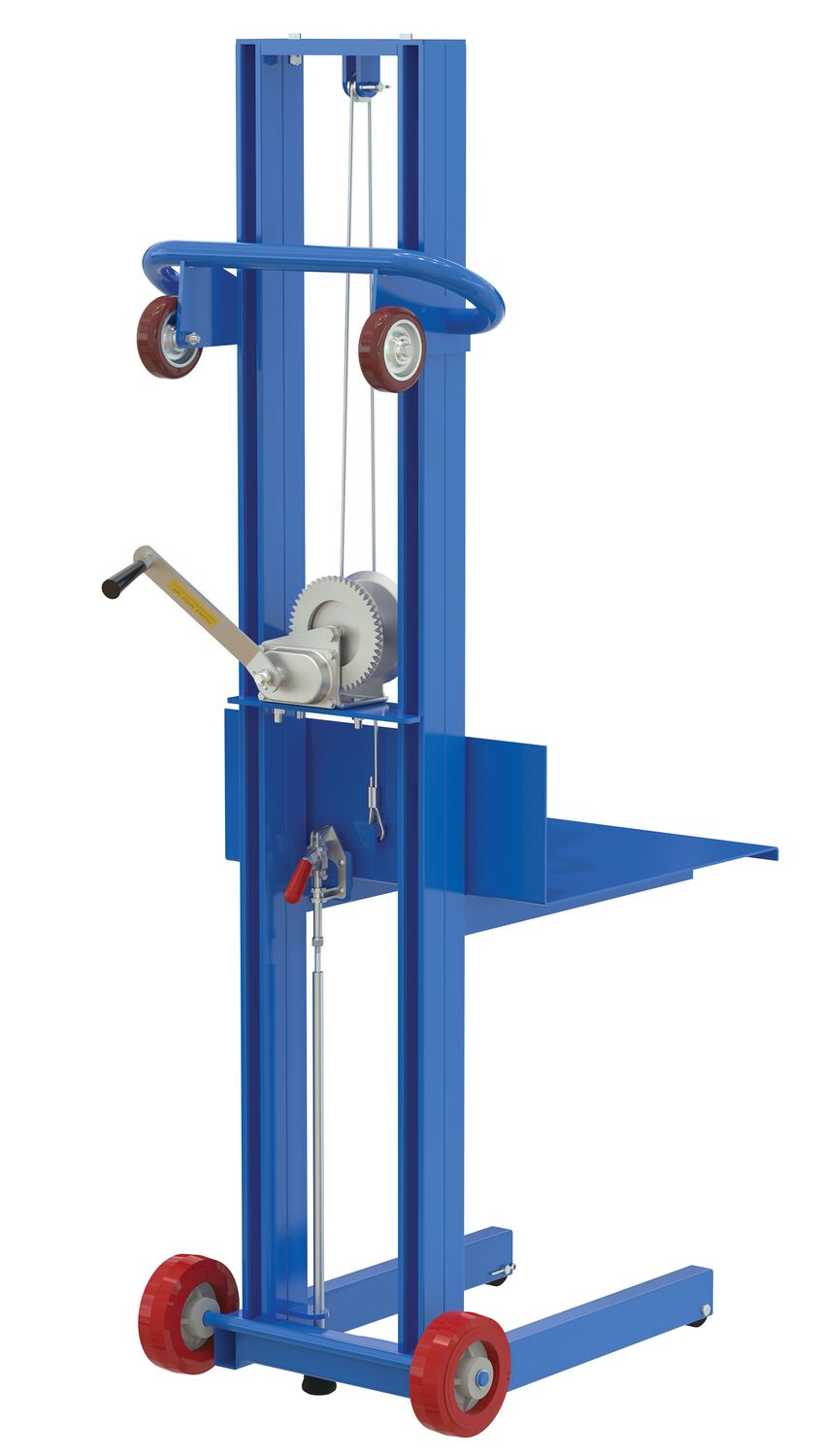 The Lite load lift is ideal for lifting and transporting loads from delivery trucks to docks, or use to inventory storage systems. This lift has an easy to operate hand winch and has an steel construction. The unit rolls smoothly on poly-on-poly rear wheels and semi-steel front wheels. Located on the handle are two (2) rollers to ease loading into delivery trucks.
