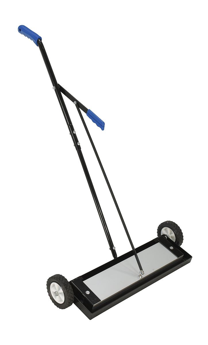 The magnetic sweeper is ideal for manufacturing facilities and construction sites. The sweeper is ergonomically friendly with an efficient handle controlled release. The design and capacity can accommodate large and small materials. While, the standard handle allows for comfortable upright position during use, the wheels allow smooth rolling for quick and easy collection of objects.
