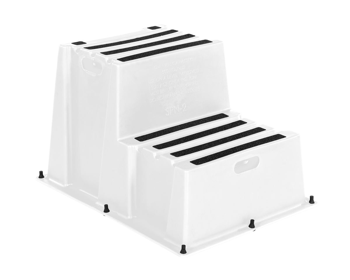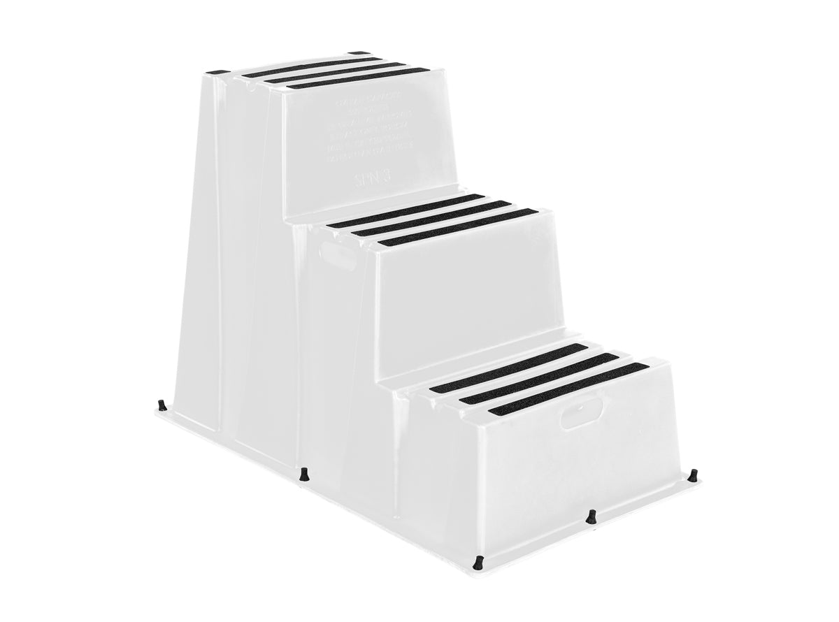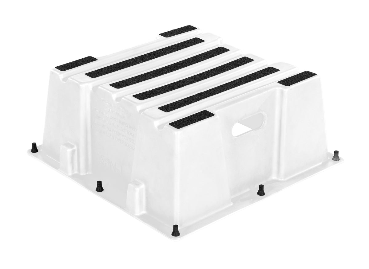 Whether you�re docking or just setting sail, the Polyethylene step stool provides a safe way to enter and exit your boat. Built to last, the durable structure is perfect for marine locations. The unique design includes a non-skid surface for safe climbing and descending of the steps. Cut out handles are standard for quick positioning and lifting.