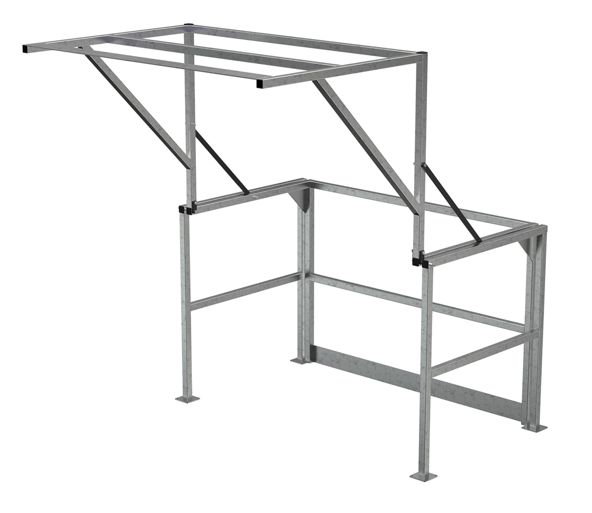 The mezzanine safety gate provides an OSHA required handrail, mid-rail and kick plate for mezzanine without sacrificing load accessibility. To accommodate the maximum load height, when utilizing a standard pallet, load positioning within the gate is critical. For greatest amount of clearance and item placement flexibility, shorter loads are recommended. The gate rotates and design is balanced to allow for easy operation without use of springs.