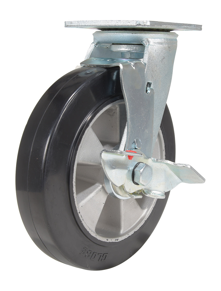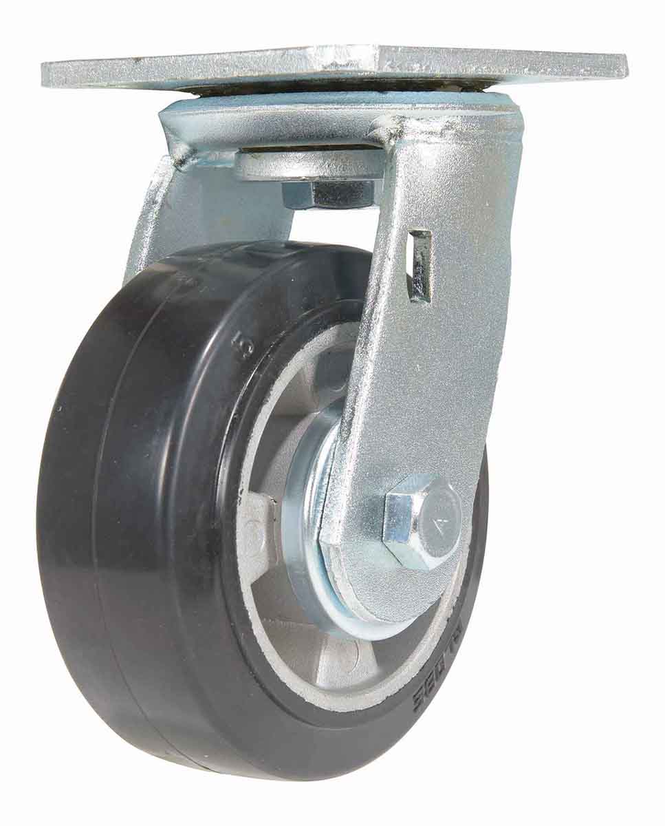 Soft rubber provides a smooth cushioned ride for delicate products. It is quiet, and absorbs shock and vibration. Likewise, unlike some harder treads, it provides a good grip. Mold on rubber casters are a cost effective way to reduce noise, and offer a smooth ride. Great for outdoor applications.