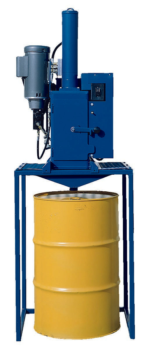 - Place a 55-gallon drum under crusher to contain oil