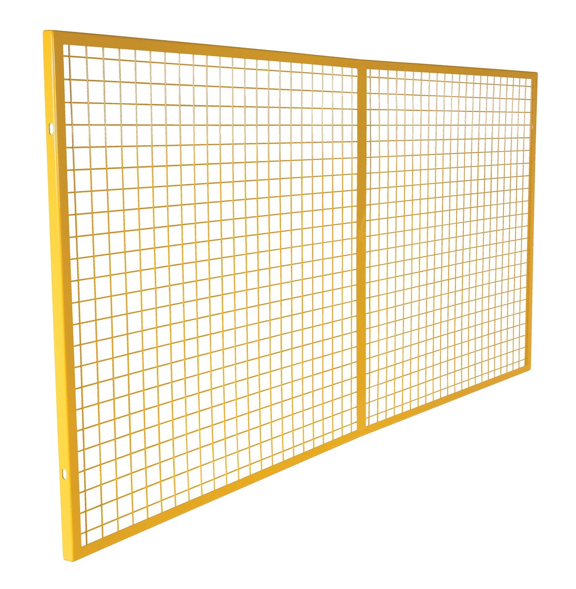 Pallet rack back guard will minimize the potential hazard of product falling out the back of pallet rack. Attach this steel protective shield with the included steel brackets. Spacer bracket installs to space out guard. Wire mesh is attached to angle frame. Hardware included.