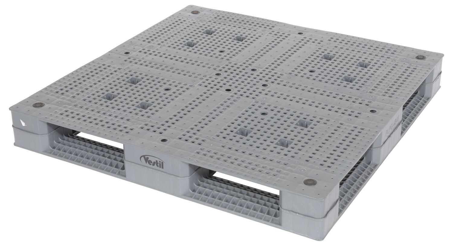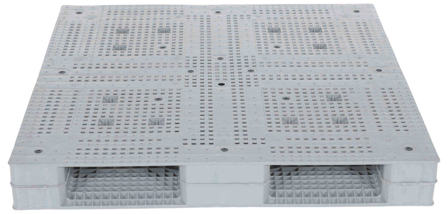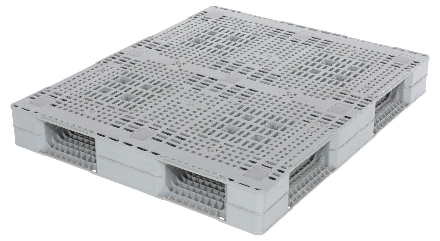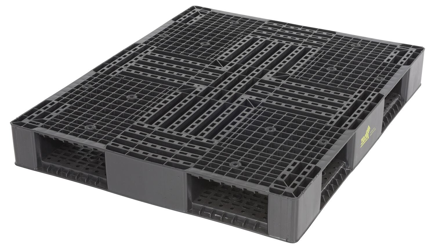 Plastic pallets are stackable for efficient storage. Made of high-density virgin polyethylene for long life. Plastic pallets are maintenance free and safer to handle than wooden pallets. Features a four-way entry and serrated deck with holes for drainage. Plastic pallets are ideal for export, pharmaceutical, medical, and food applications.