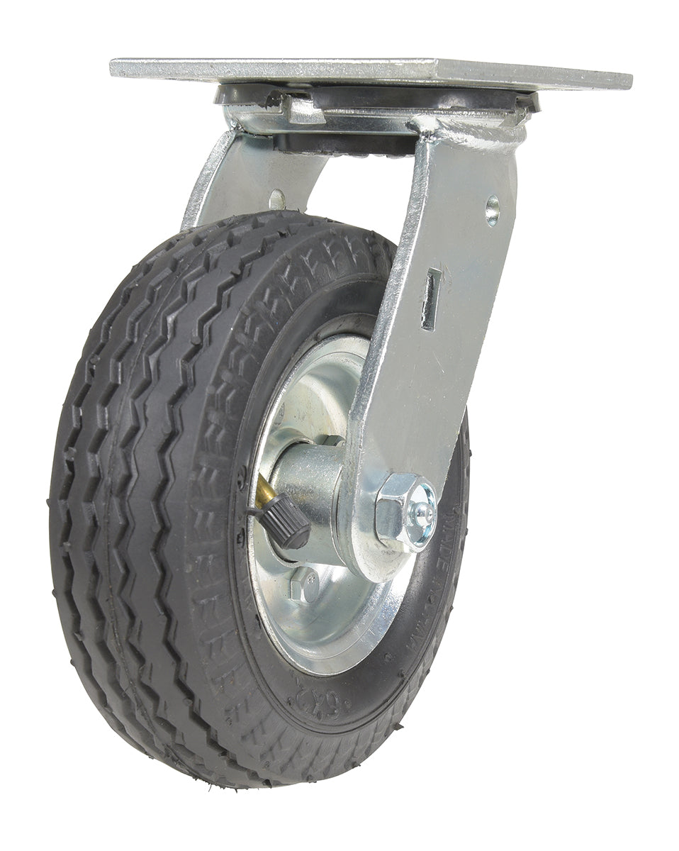 Pneumatic casters provide a paramount shock absorbent ride that cushions and protects fragile loads. They offer a smoother ride over uneven difficult terrain. Likewise, pneumatic casters provide better grip and control over challenging debris.