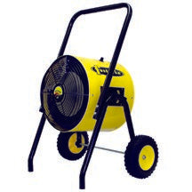 The portable electric salamander is the perfect odorless, flame less electric alternative to propane and kerosene space heaters. Safety yellow heater encloses with safety screens on both air intake and output openings. The unit includes long-life finned tubular heating elements, thermostat adjustment, and a fan only operating feature. Includes access panel for direct wiring connections, wheels, and handle for easy portability over all surface types. Units are et C/US listed.