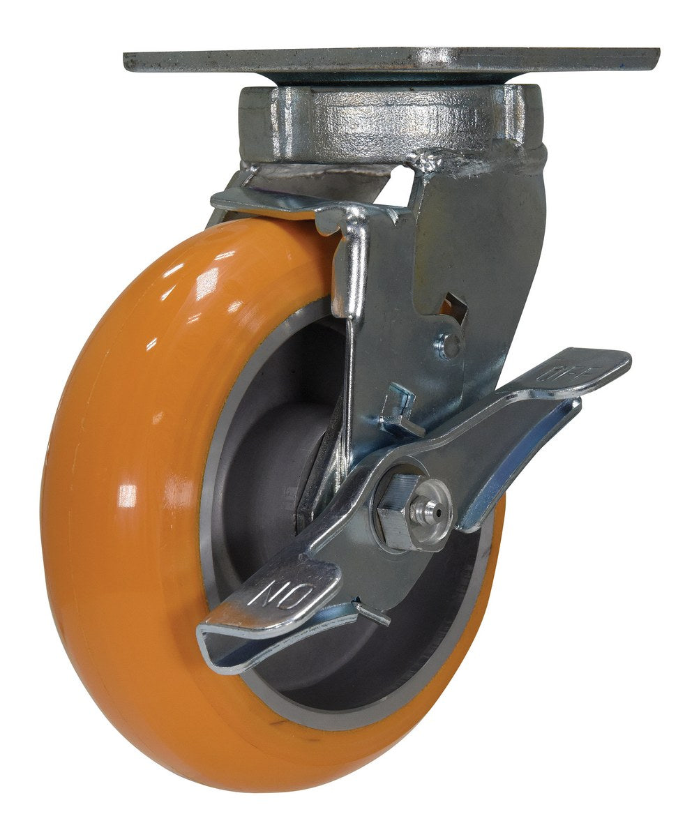 The high grade elastic polyurethane on aluminum wheel is manufactured from premium high grade tread polyurethane bonded to a light weight aluminum core with 6203 precision bearings. The high quality polyurethane tread, uniquely combines a smooth softer roll with increased capacity and longer life. This increased life is needed in towline and heavy industry applications where fabrication debris and constant movement can affect a lower quality wheel. This wheel is the perfect choice for applications where superior ergonomic performance is critical. The unique polyurethane wheel tread can reduce the force needed for movement and reduce vibrations during rolling, which provides a smooth, quiet and highly maneuverable performance. Because of the special wheel tread, this wheel can deflect debris to help keep the wheel clean and decrease maintenance costs.