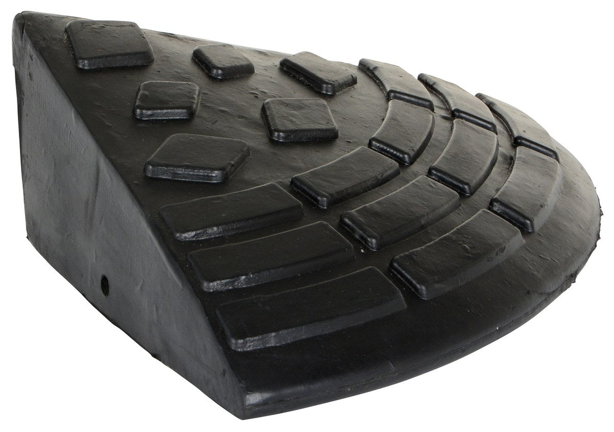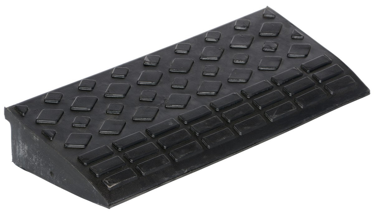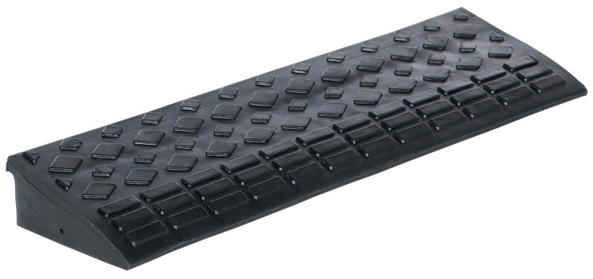 The rubber ramp consists of modular rubber that is versatile for use in many applications. Add round corner piece (sold separately) for a finished look. Tread surface pattern for better traction. Includes hardware for connecting ramps together. Heavy-duty molded rubber construction.