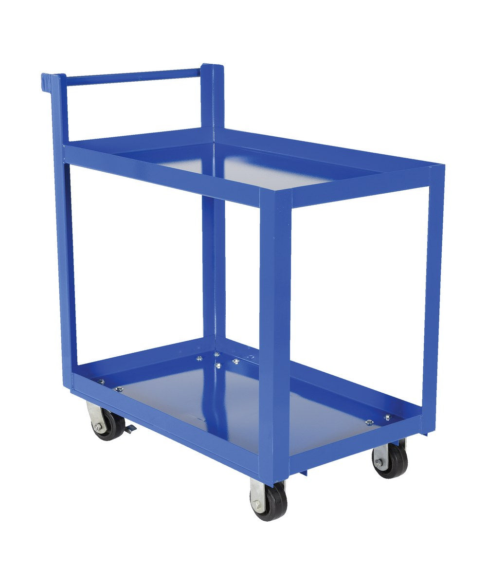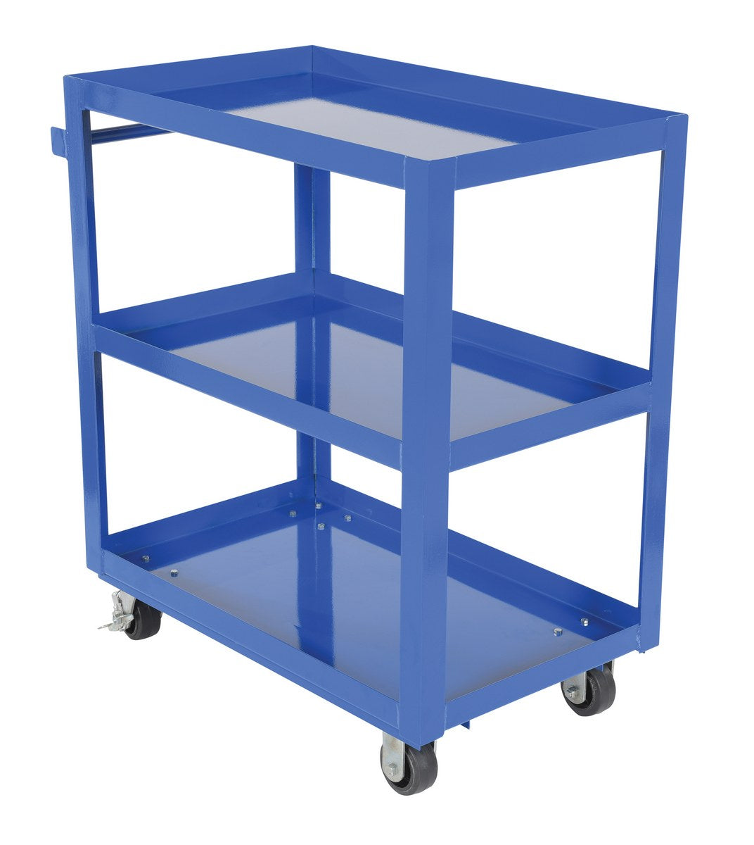 All welded service cart, made of aluminum is ideal for transporting parts and boxes. This unit has three (3) shelves, a lip is turned up on all shelves to prevent items from sliding off.