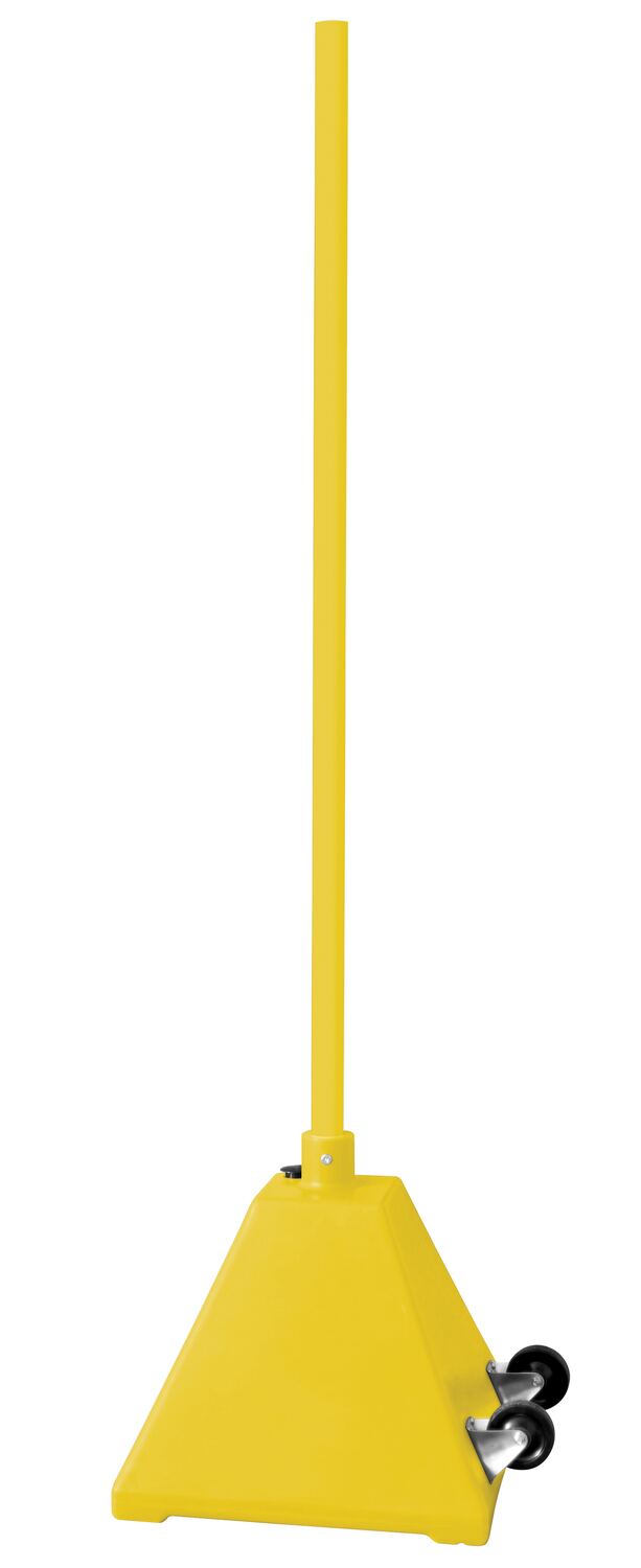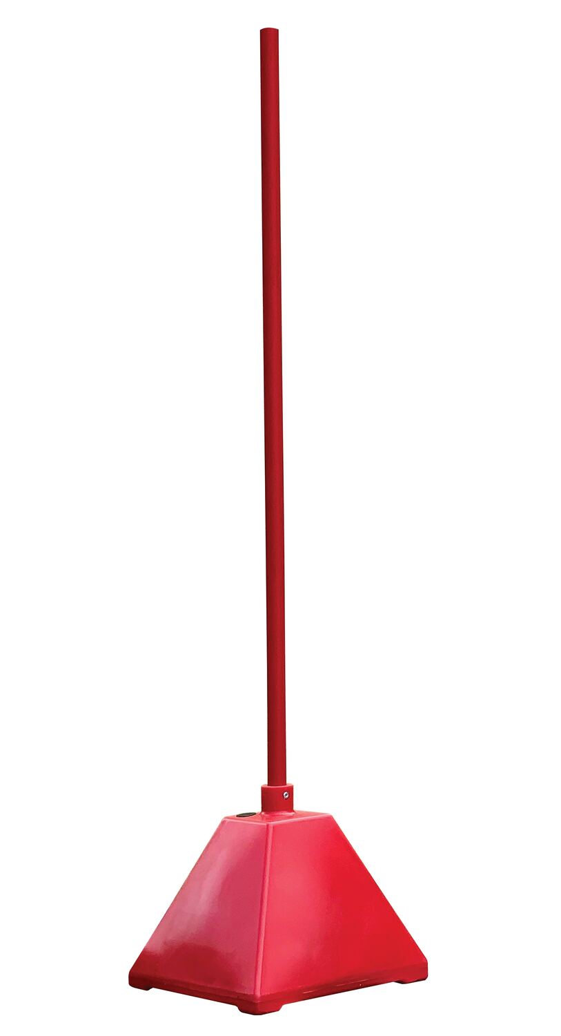 This pyramid sign base with pole is an affordable and convenient solution to adding safety to your facility. This light weight system makes for easy off-loading and set-up, compared to the cement sign base. This unit may be used in permanent application and has very low maintenance. Fill the base with concrete, sand or gravel.