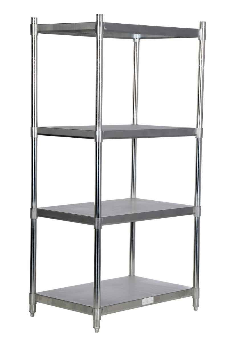 Stainless steel shelving ensures that stored items are accessible from all sides. Construction made of premium stainless steel brushed finish is perfect for commercial or industrial use. Each model of Gold Key Equipment comes with four set screw adjustable shelves perfect for merchandise of various heights.