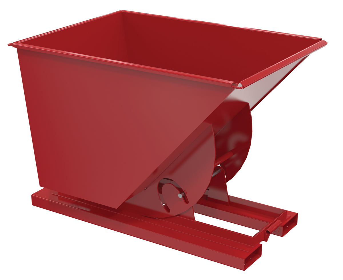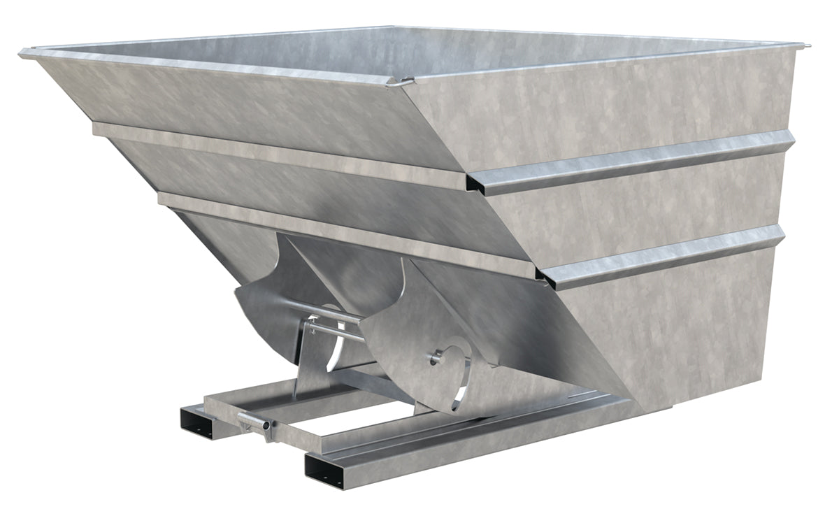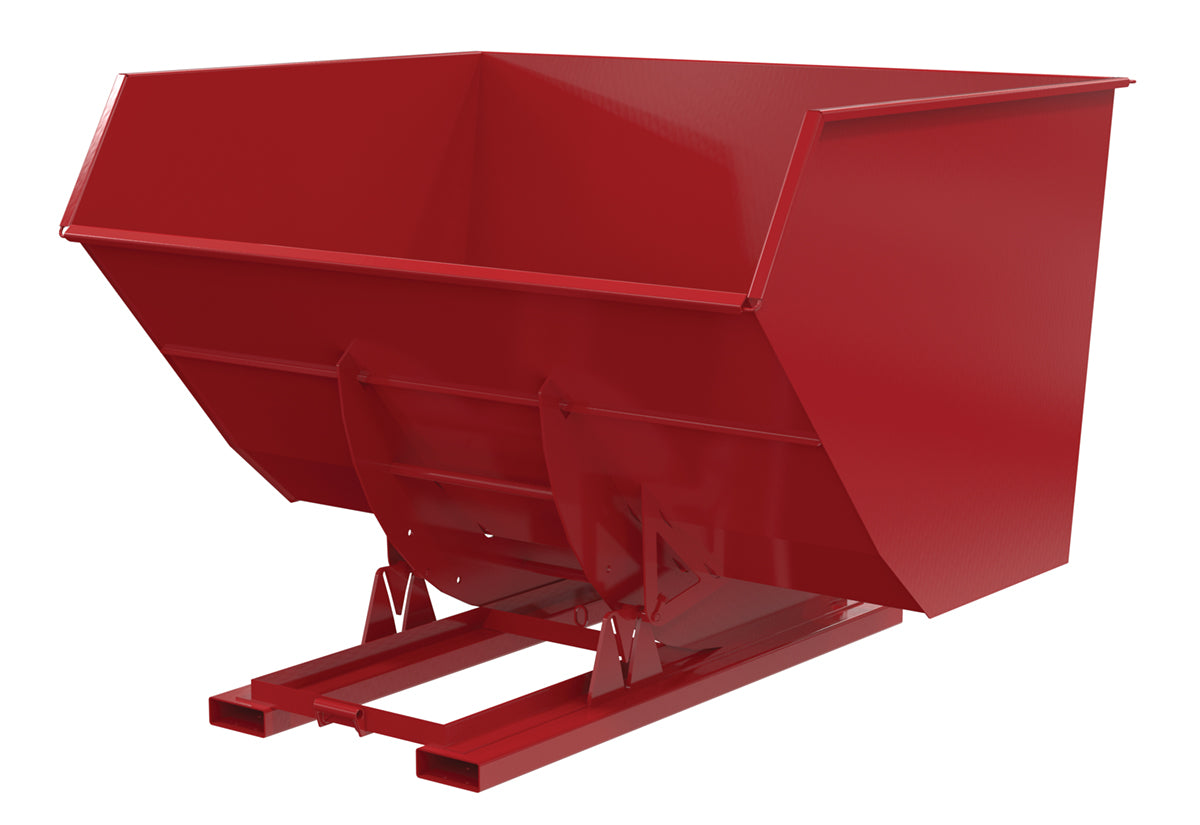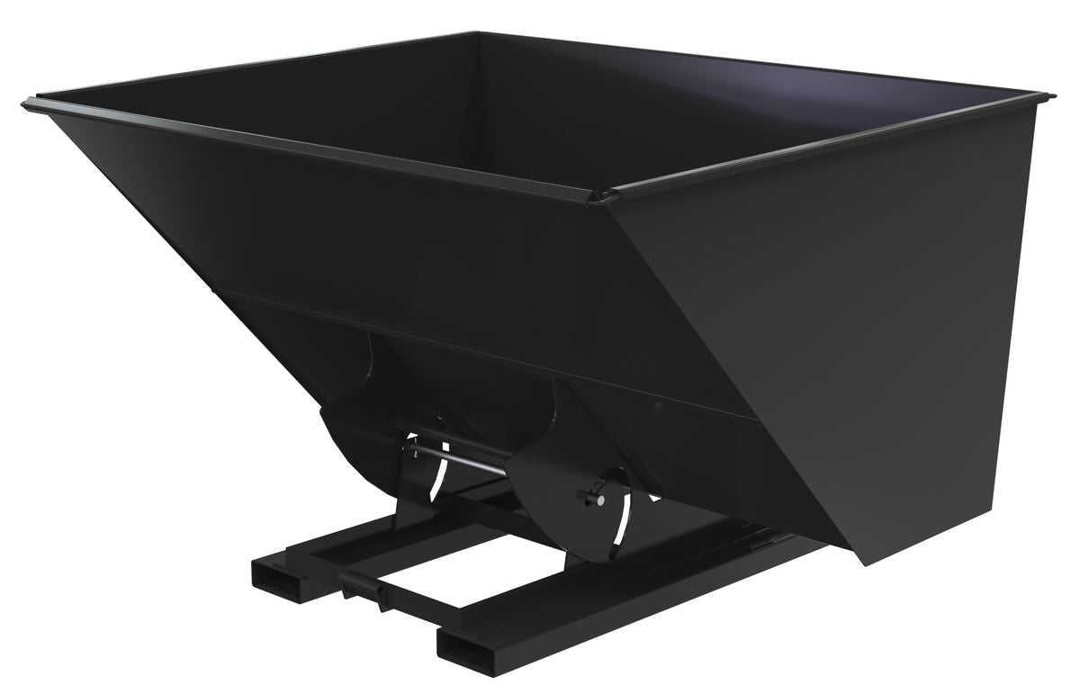 This steel Hopper is the perfect resolution for loading and unloading large amounts of items. With a steel construction, the hopper maintains a structural strength that endures the strain of consistent daily use. The manual release feature gives the forklift driver the ability to never leave the driving position, which allows personnel to stay at a safe distance throughout the dumping process. In addition to the smooth surface, the contoured edges let items flow freely out of the hopper for a complete clearing of loaded goods.