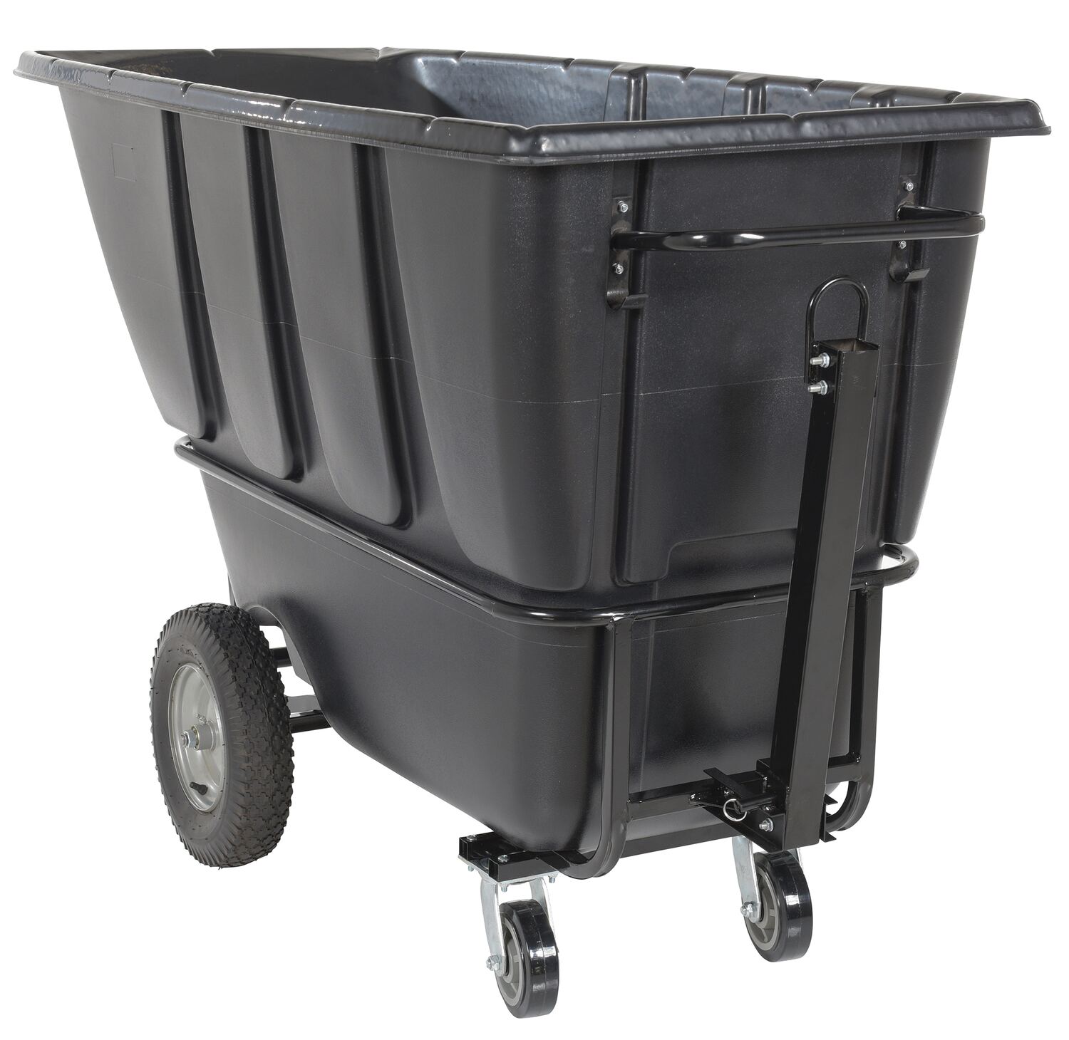 When a large amount of material needs gathered, look no further than the tow-able tilt truck. The durable design functions well in an array of conditions and aids the user in collecting large amounts of remnants in a single pass. It�s great for busy areas like warehouses, fairs, and schools. The one yard capacity unit is tapered in front to make it easier to pour materials into yet another larger container. A tow-able function enables the user to connect the truck to an additional pulling device for quick movement.