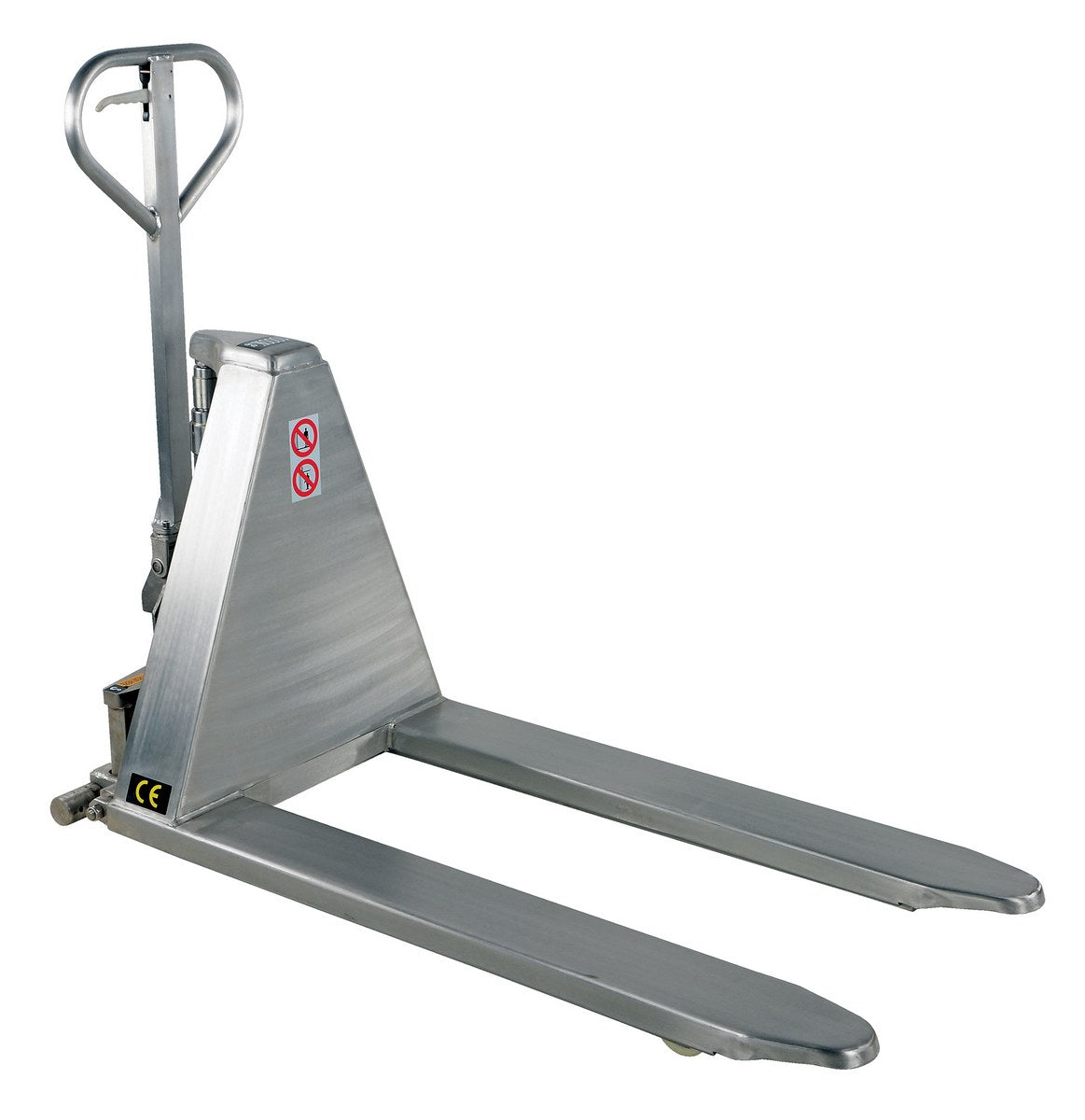 The tote lifter is designed to lift open bottom skids, boxes, and baskets. This lifter has the hand pump to raise or lower. The hand pump design features an ergonomic pump handle with two (2) lifting speeds to accommodate for light or heavy loads. The side stabilizers lock lift in place when load is raised over a certain height.