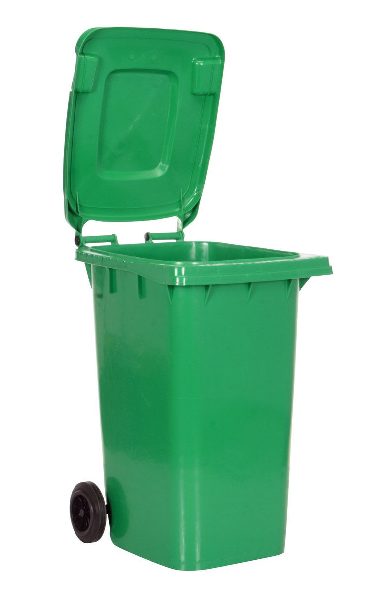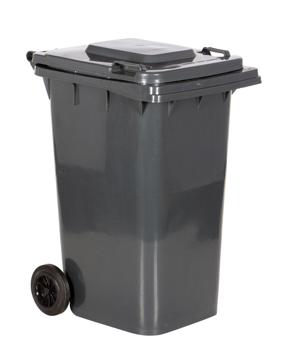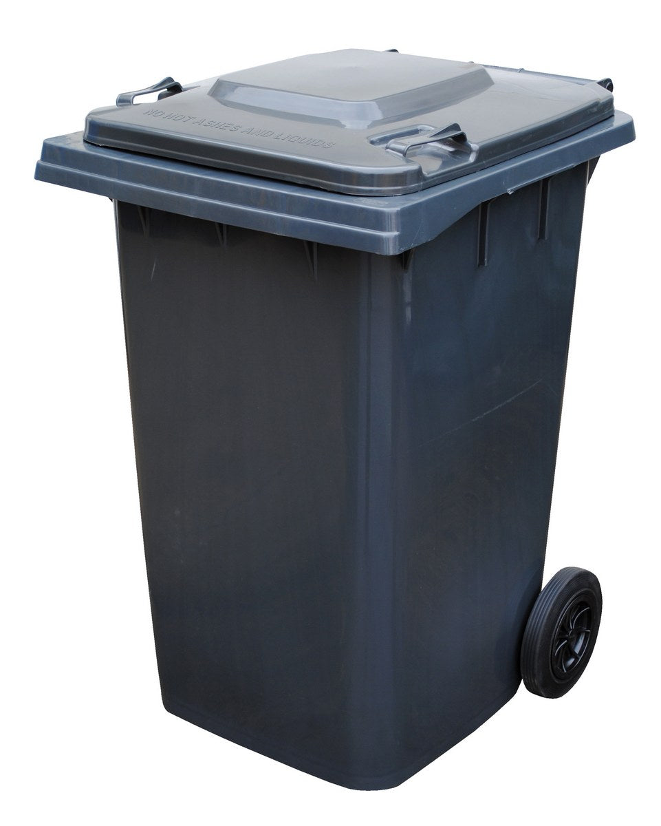 The trash can with metal Foot lid lifter is constructed of durable polyethylene that withstands subzero cold and extreme summer heat. Great for high traffic areas such as: warehouses, fairs, ball parks, schools, etc. Each container includes two wheels for easy portability and hinged lips to keep the rain out. Keep your waste out of eyesight in our heavy-duty and easy to move refuse containers.