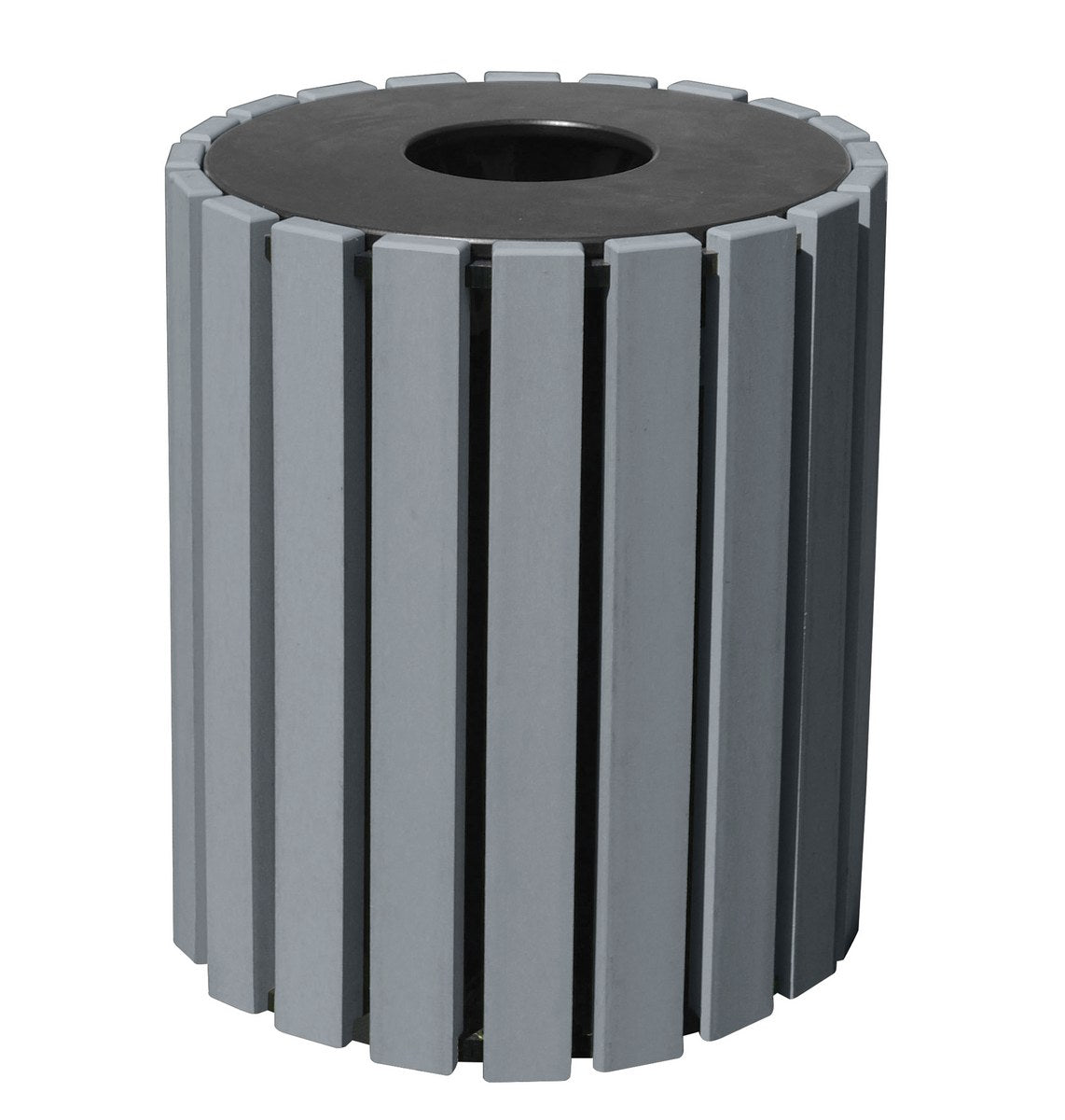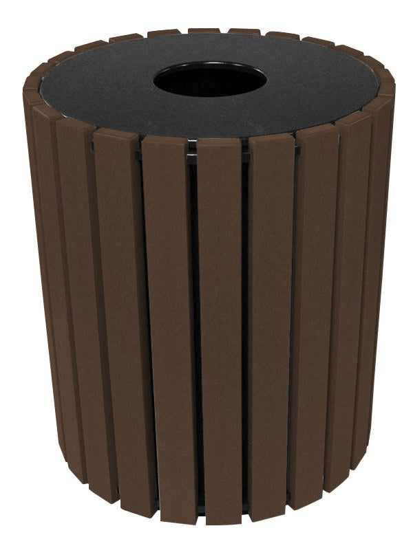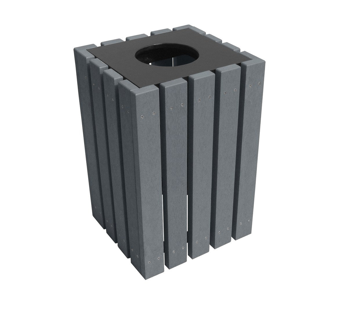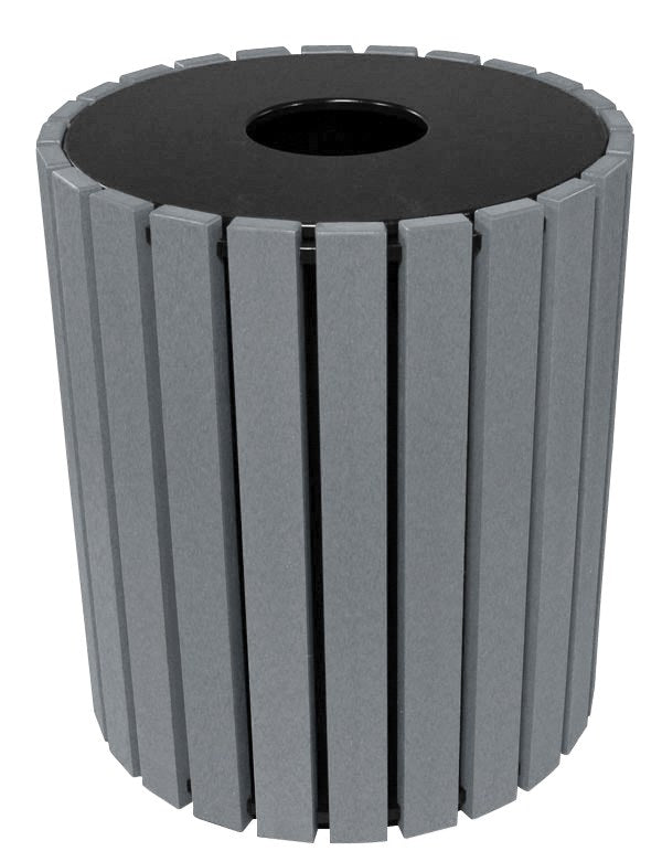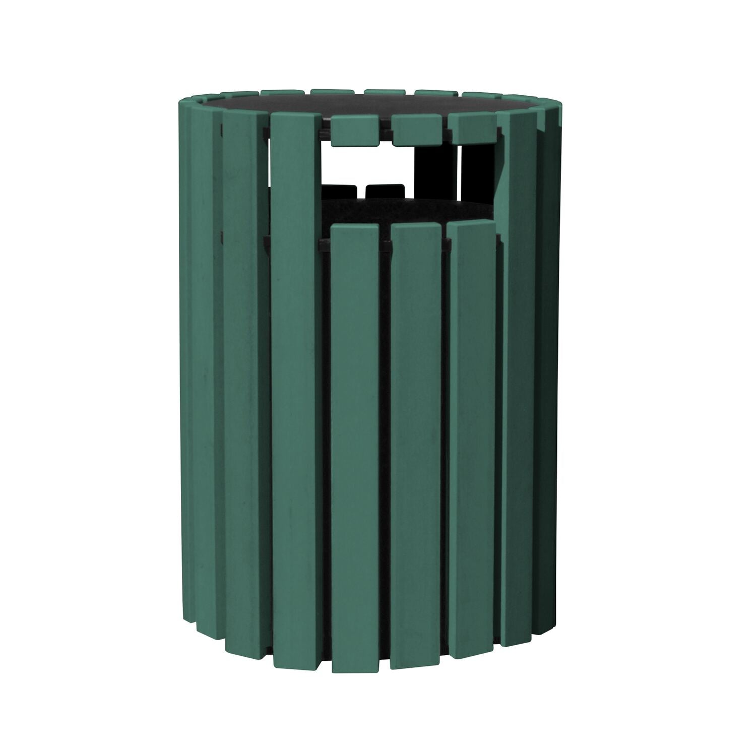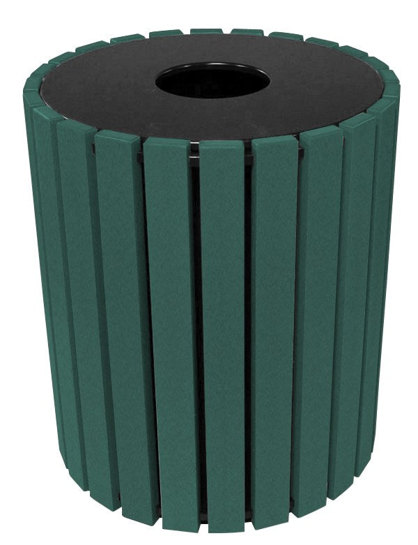 The large capacity 33 gallon receptacle can be used for trash or as part of a recycling station. Made in America of 100% post-consumer recycled plastic, it include an inner plastic liner and is available in seven (7) colors with a black top. Stainless steel fasteners ensure a rust resistance long life, and are internal to provide a clean, blemish-fee appearance.