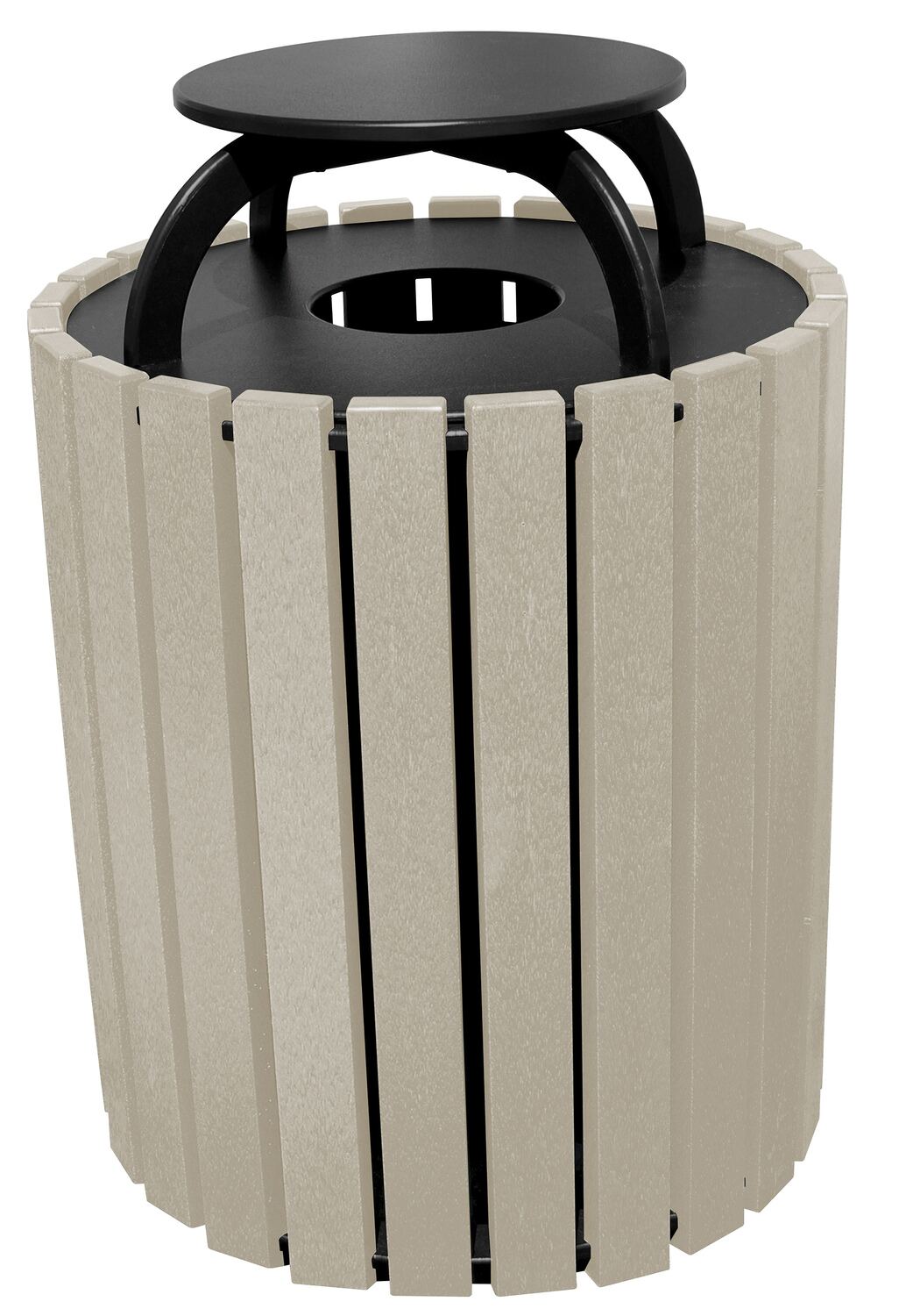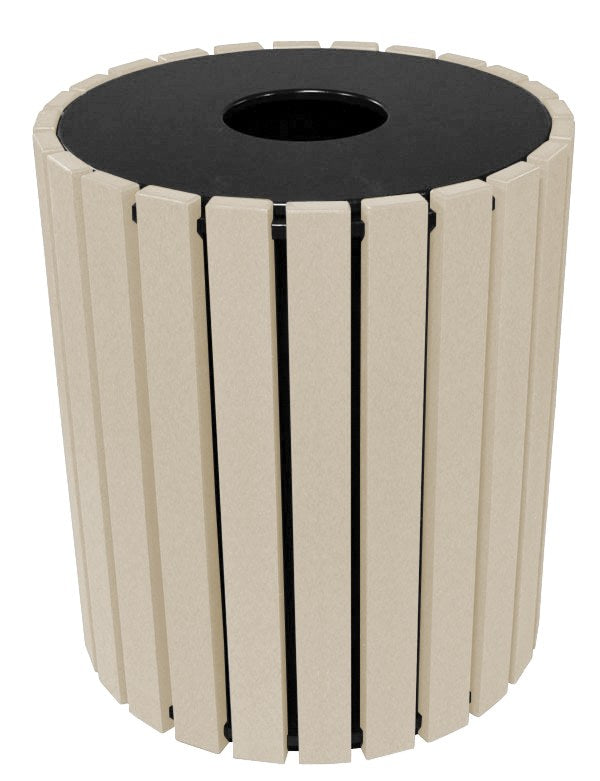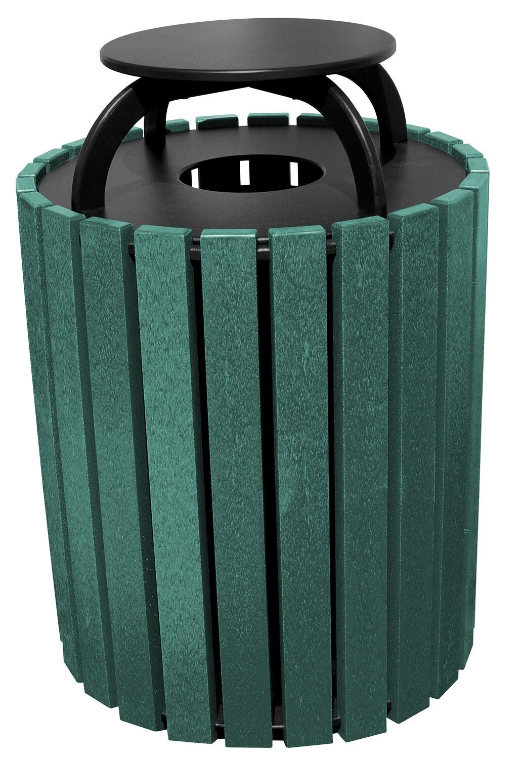 Keep your environment clean and keep plastic out of the landfill at the same time. Rain caps available. We've added flare to utility with our round flare top receptacle! The unique deign has an inner liner and 33 gallon capacity, and is made in America of 100% post-consumer recycled plastic. It's eco-friendly while helping keep trash/recyclables in their place.