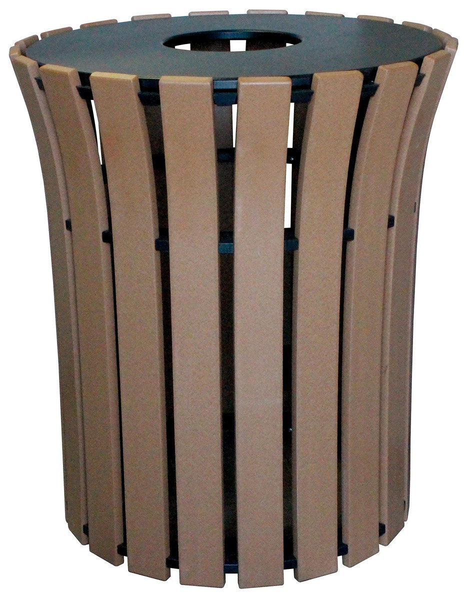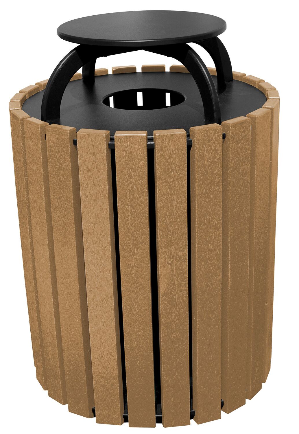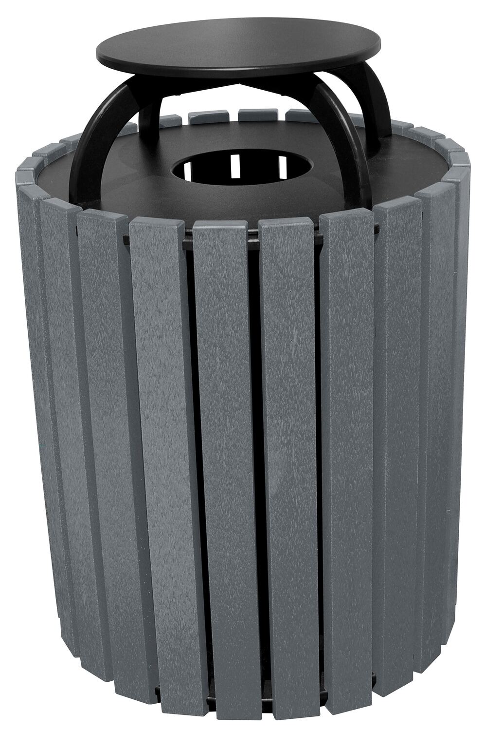 Keep your environment clean and keep plastic out of the landfill at the same time. Rain caps available. We've added flare to utility with our round flare top receptacle! The unique deign has an inner liner and 33 gallon capacity, and is made in America of 100% post-consumer recycled plastic. It's eco-friendly while helping keep trash/recyclables in their place.